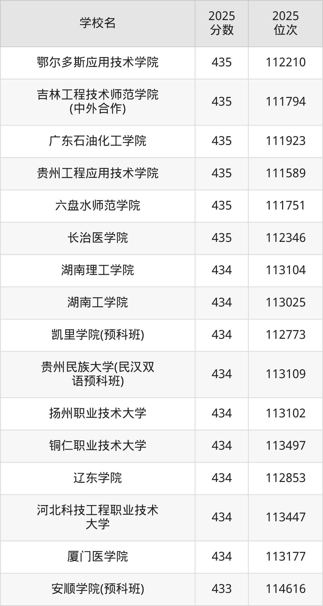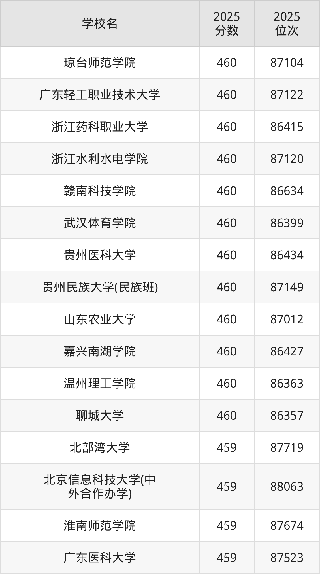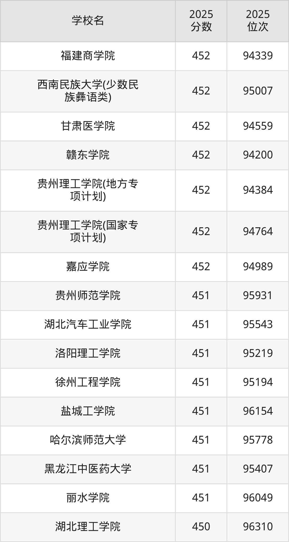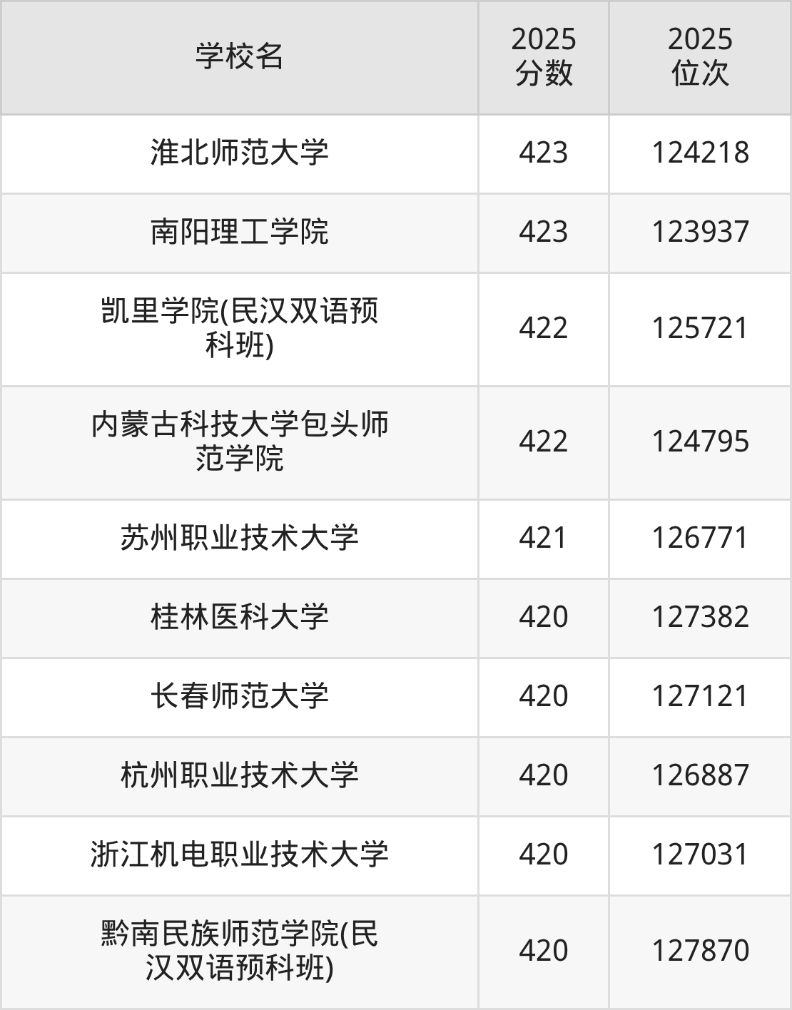 录取分数线的波动较大,下面圆梦小编为大家带来了2025年420到460分对应的位次排名区间,建议2026年位于该位次范围内的考生参考上文所整理的学校(本文仅针对贵州省)。