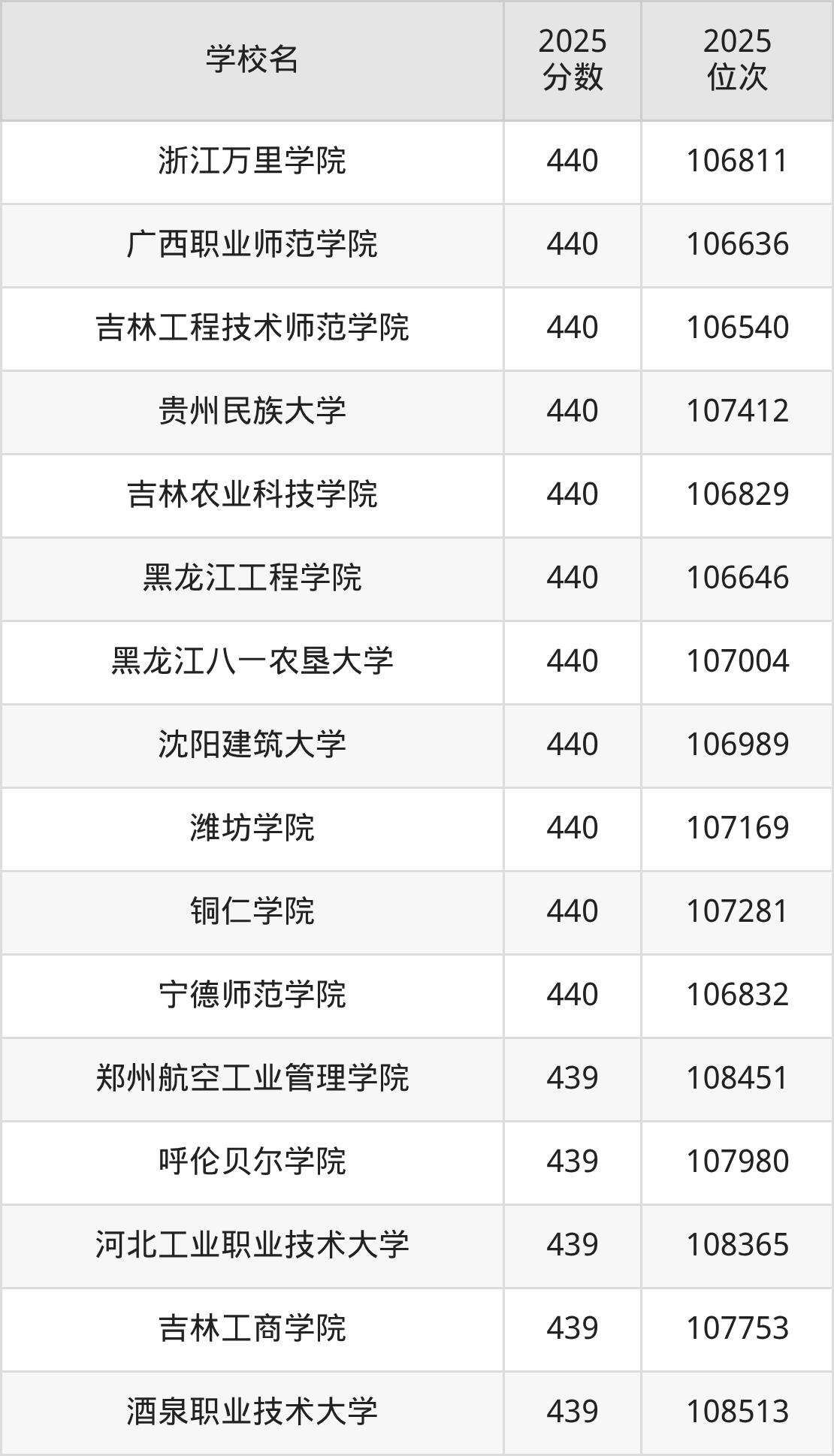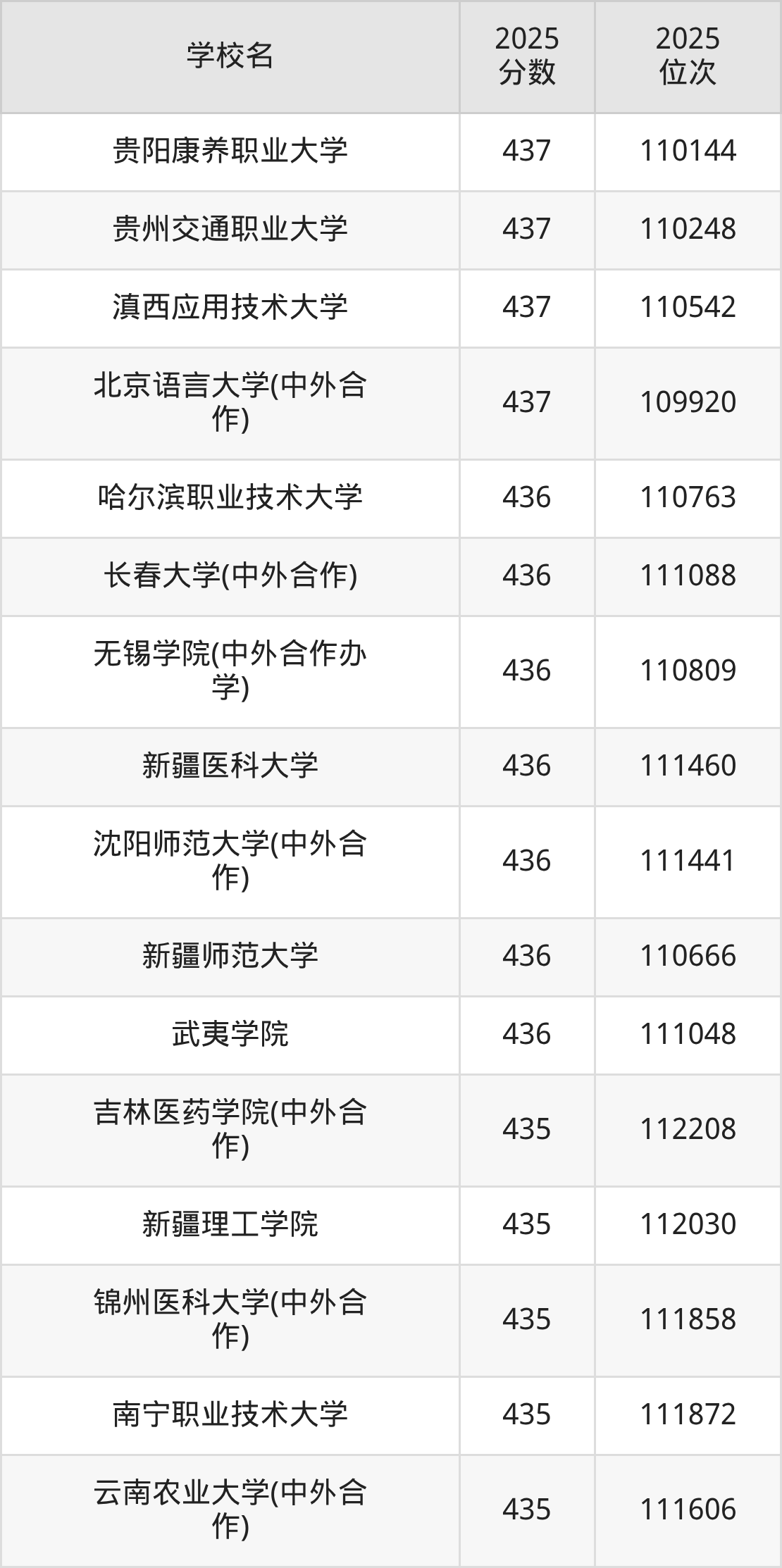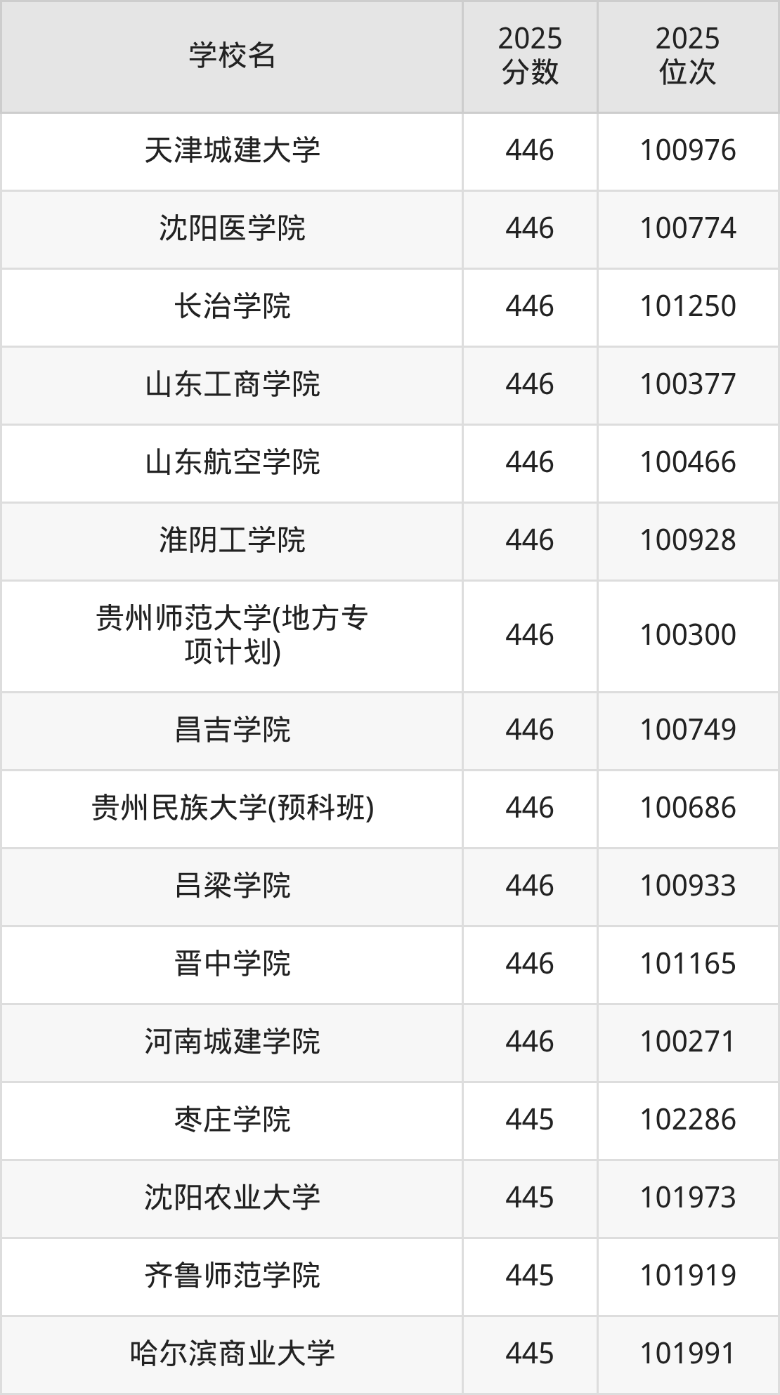 录取分数线的波动较大,下面圆梦小编为大家带来了2025年420到460分对应的位次排名区间,建议2026年位于该位次范围内的考生参考上文所整理的学校(本文仅针对贵州省)。