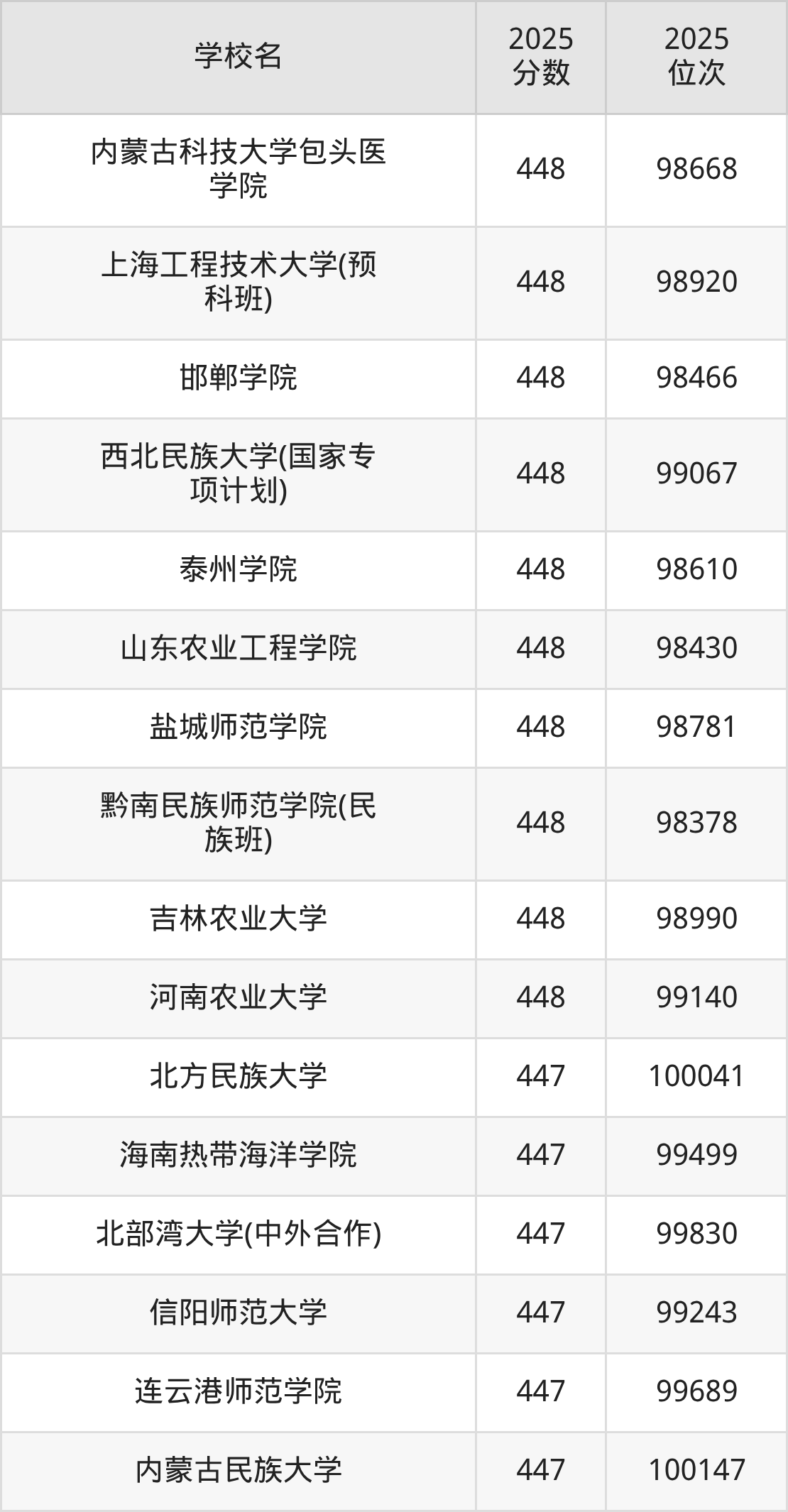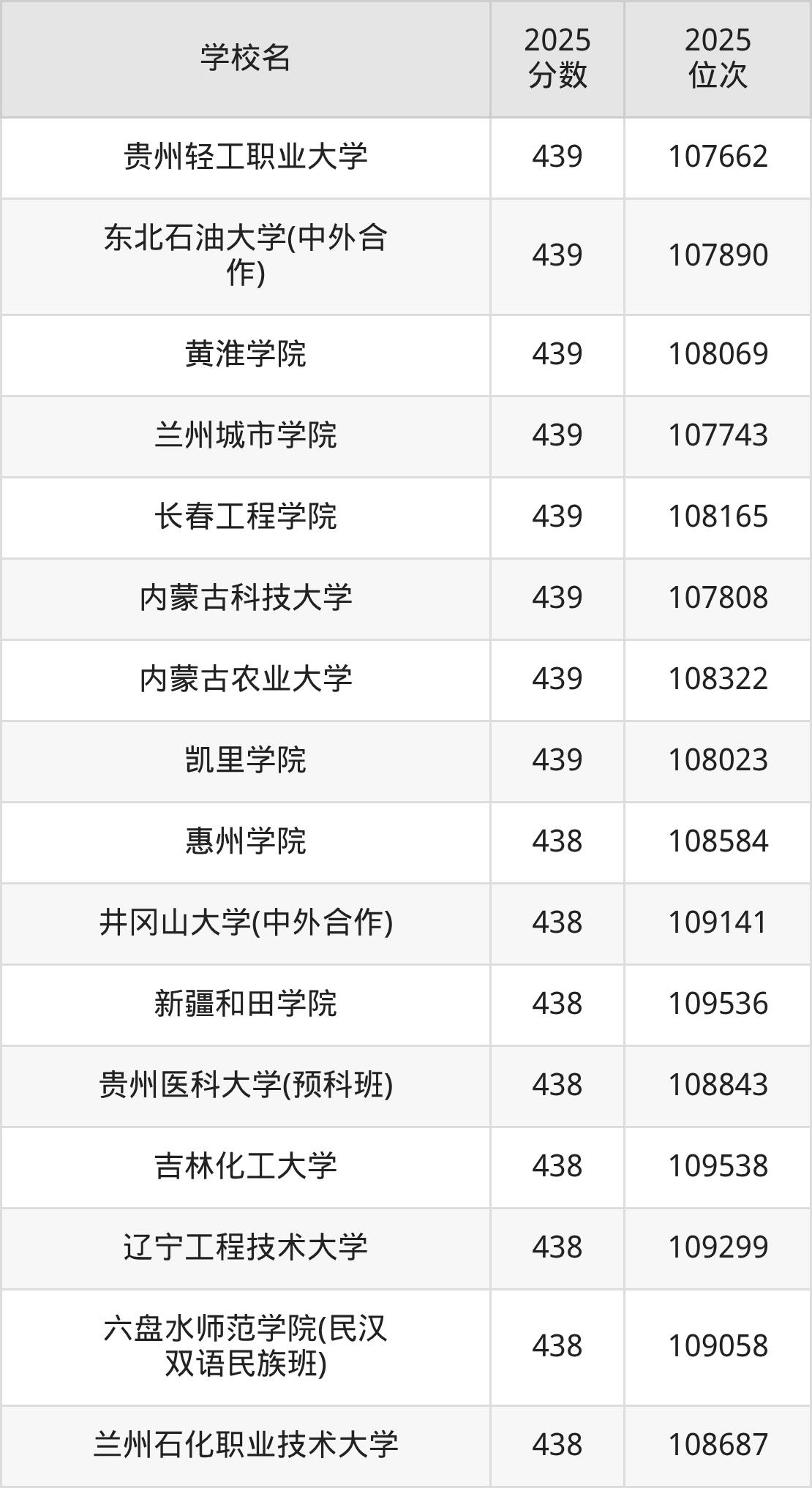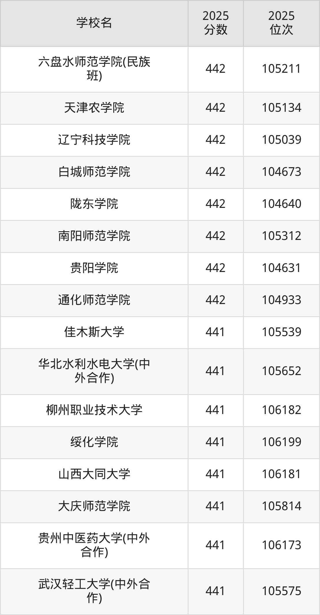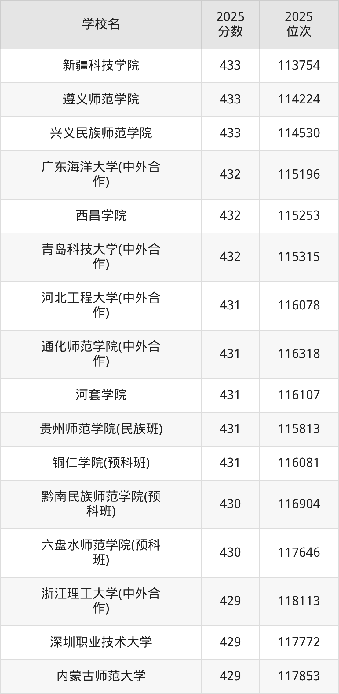 录取分数线的波动较大,下面圆梦小编为大家带来了2025年420到460分对应的位次排名区间,建议2026年位于该位次范围内的考生参考上文所整理的学校(本文仅针对贵州省)。