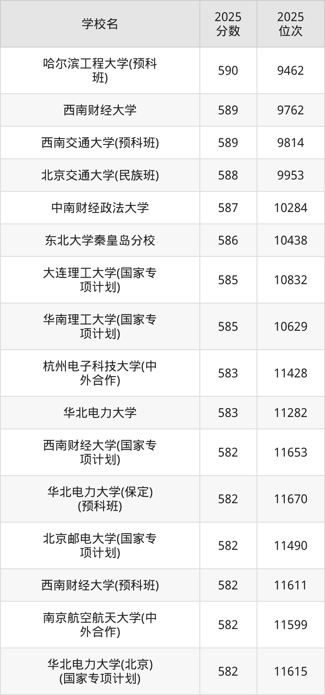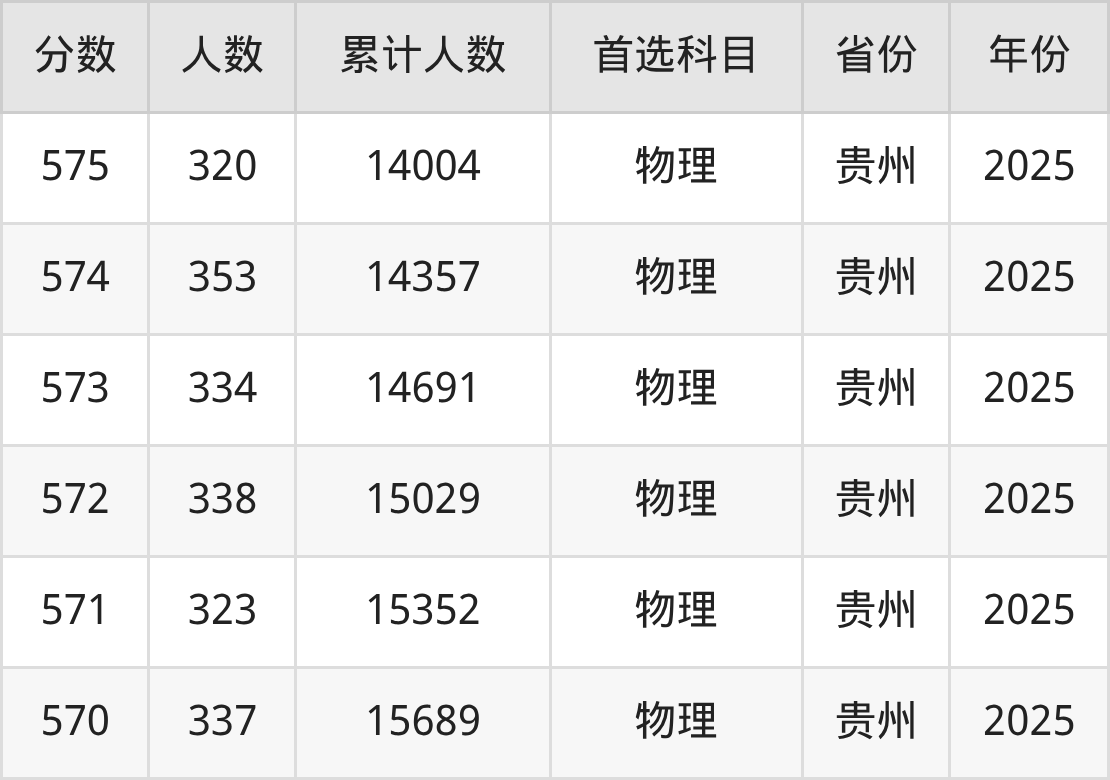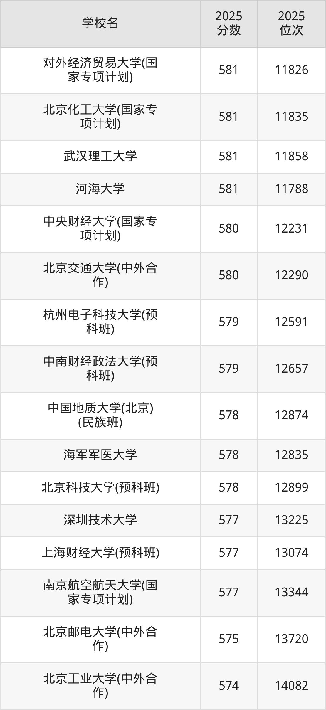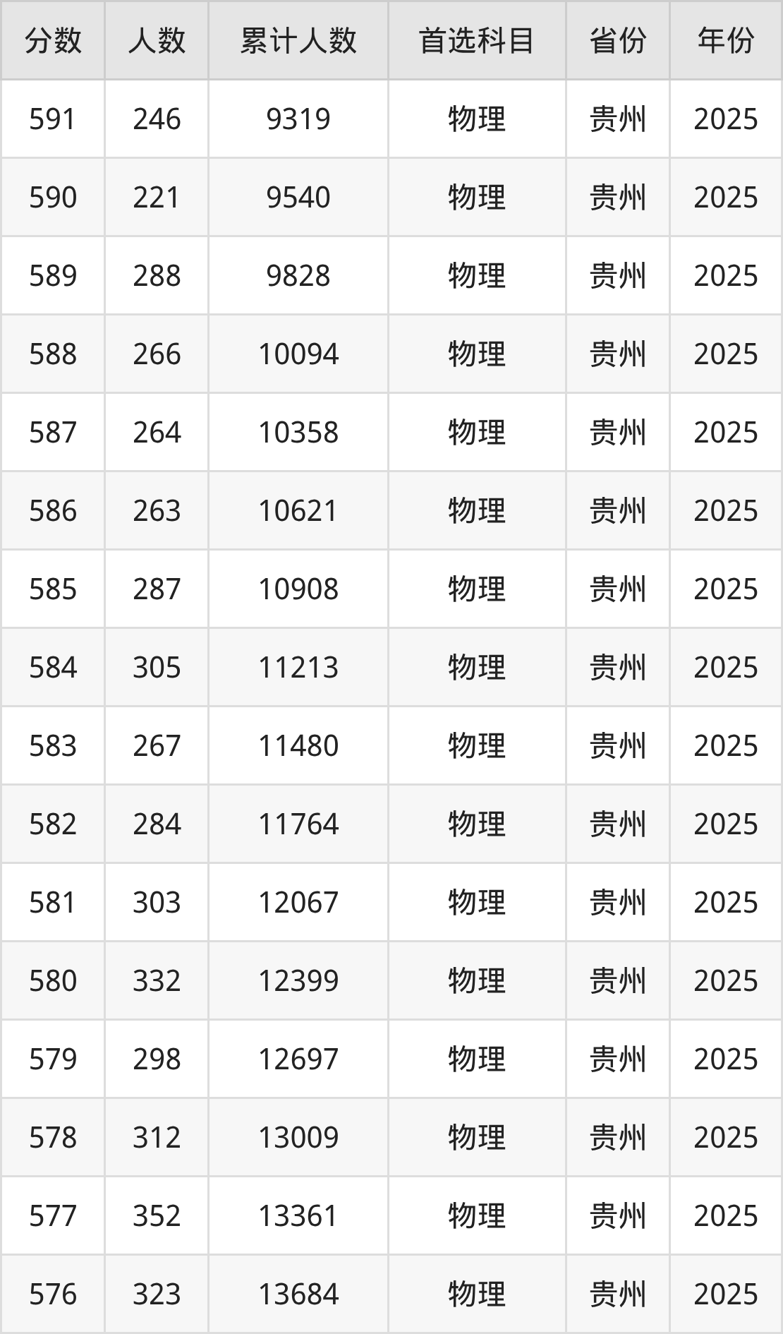 温馨提示:全国各省录取分数线不相同,本文以贵州省为例,为大家带来2025年录取分数线位于570到590分的理科大学名单汇总,并附上该分数段对应的位次排名区间,供查阅。