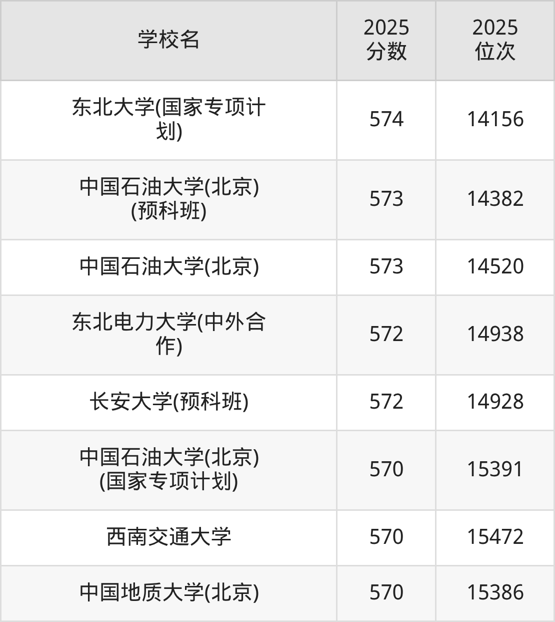 2025年570到590分录取的理科大学一共有57所,其中首选历史科目考生能上的有19所、首选物理科目考生能上的有40所。