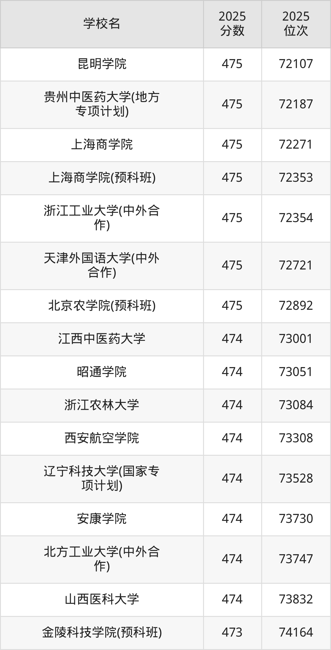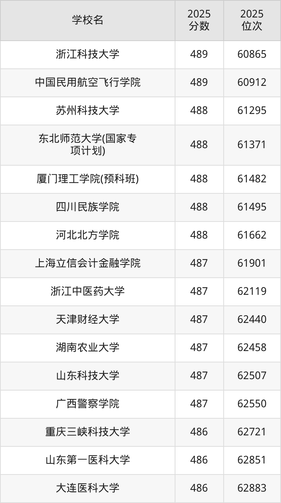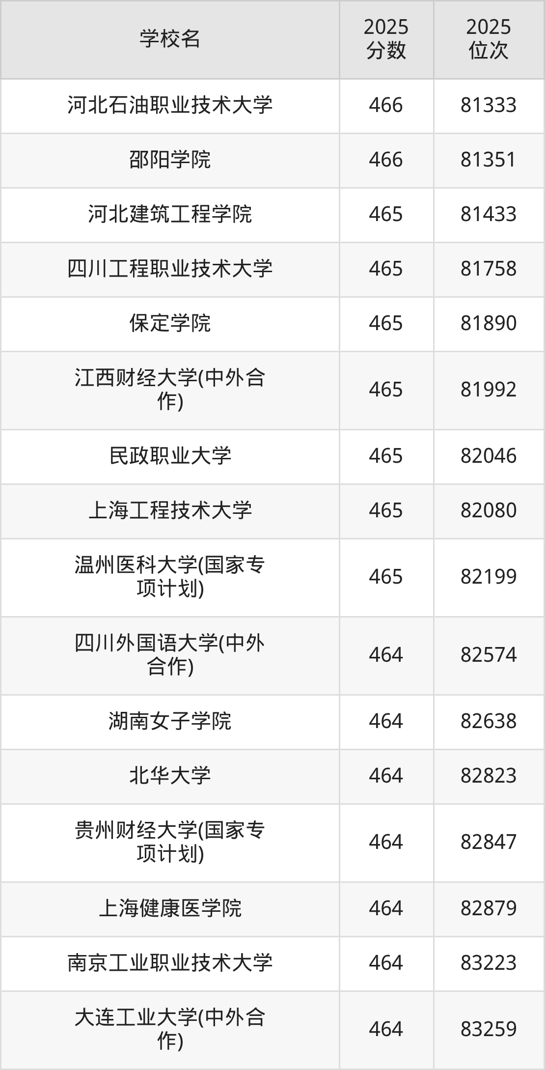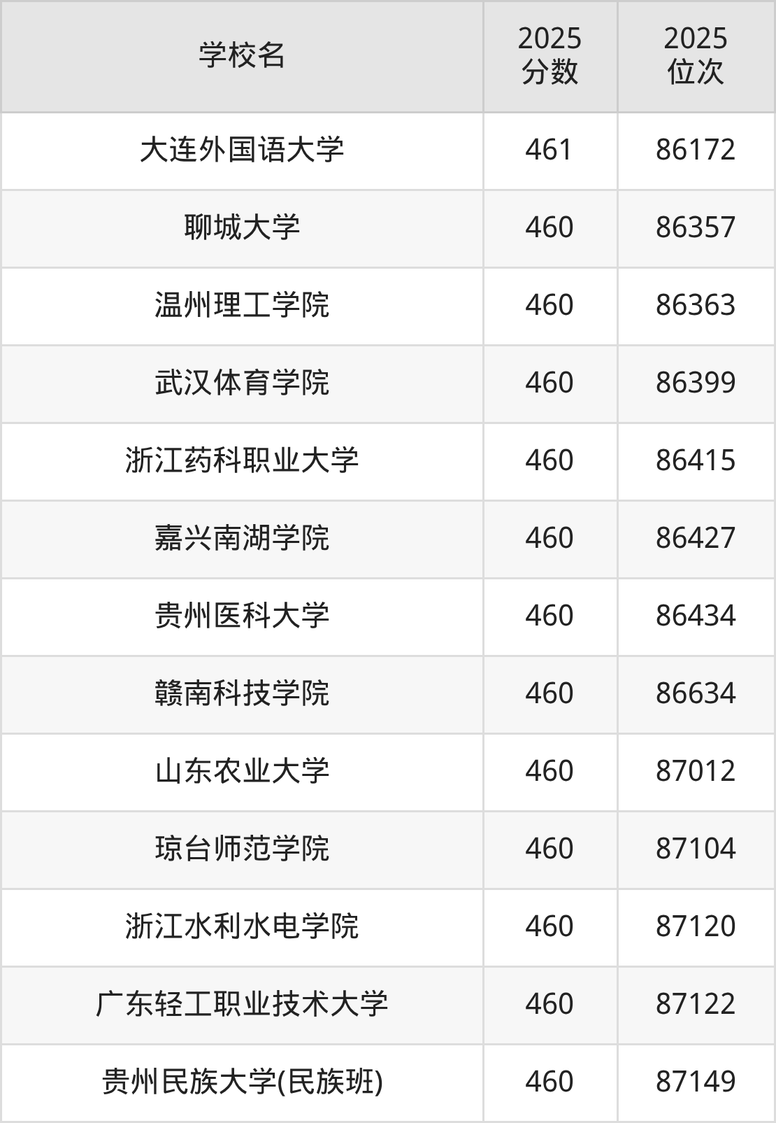 | 学校名 | 2025 分数 | 2025 位次 |