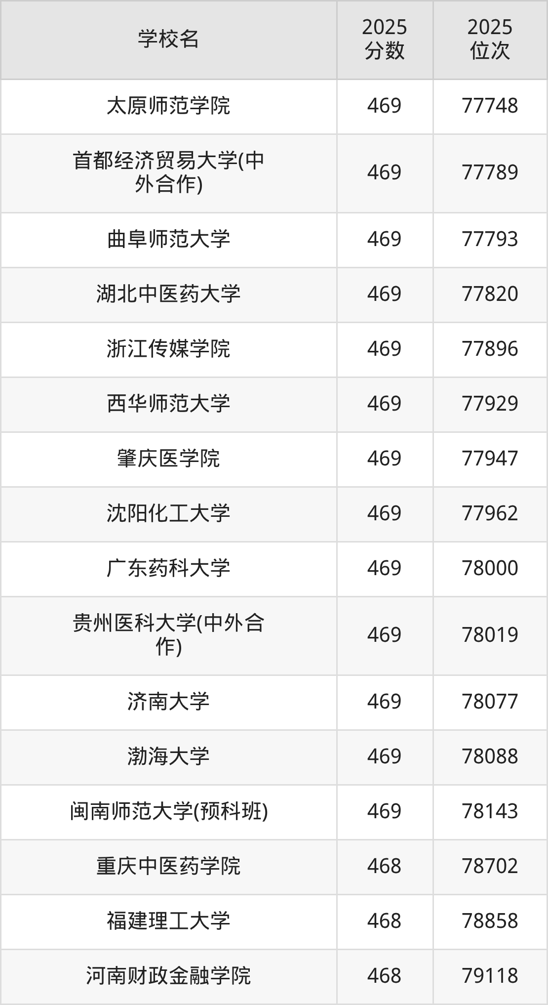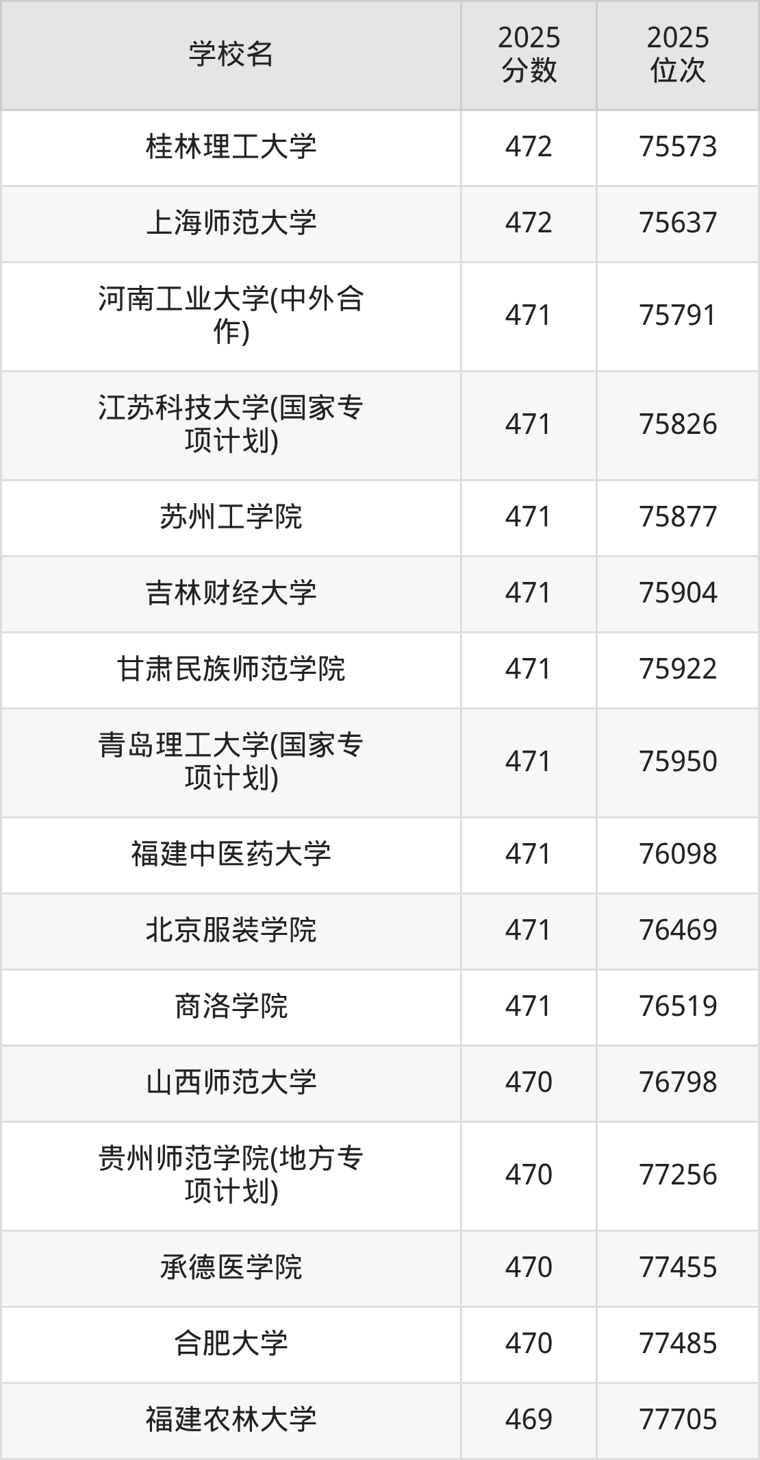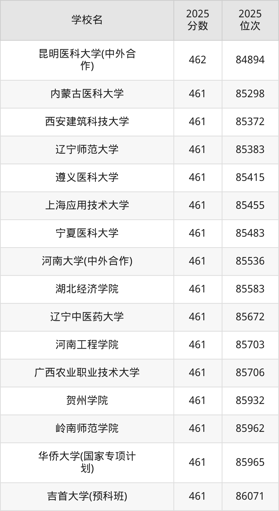 | 学校名 | 2025 分数 | 2025 位次 |