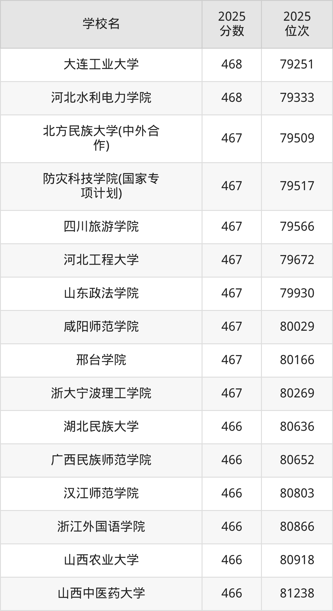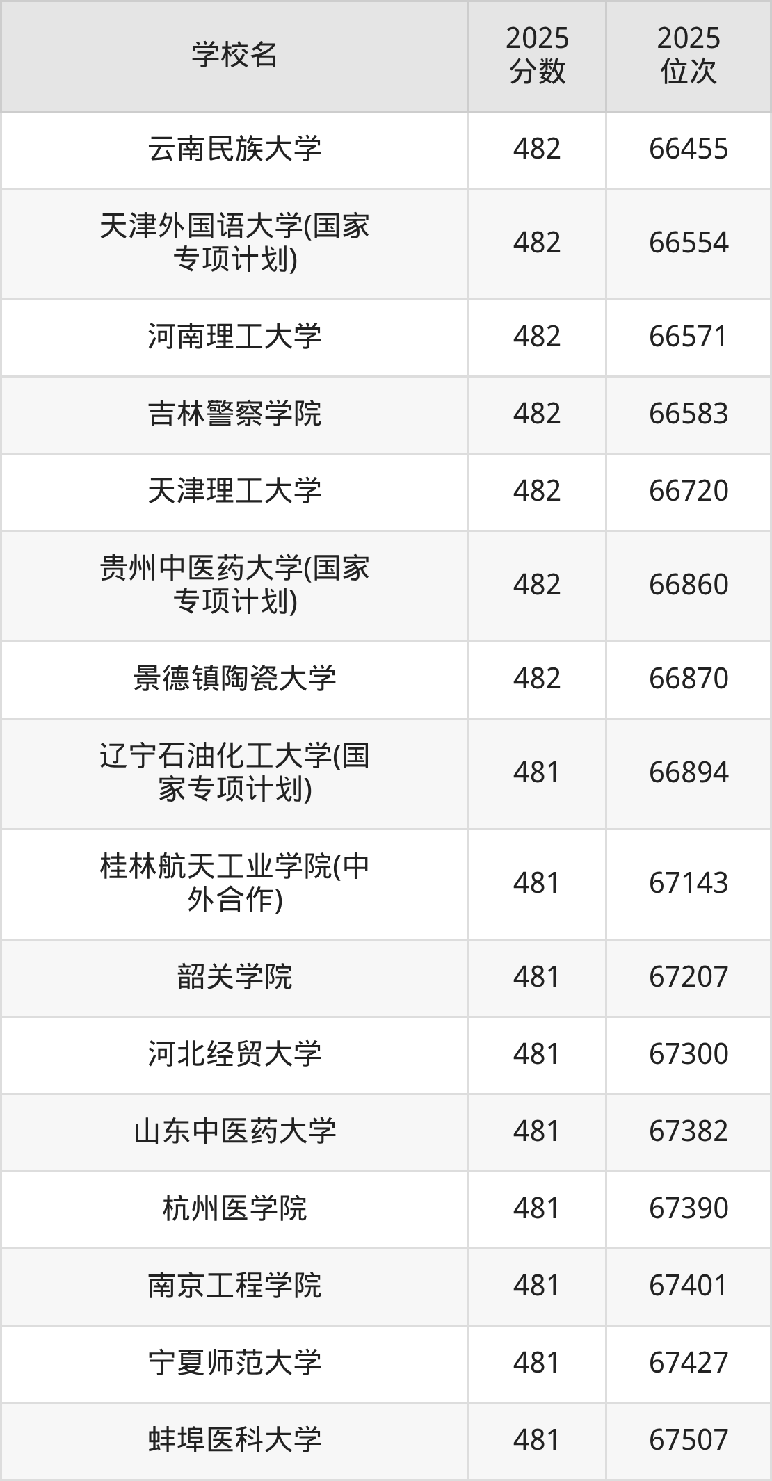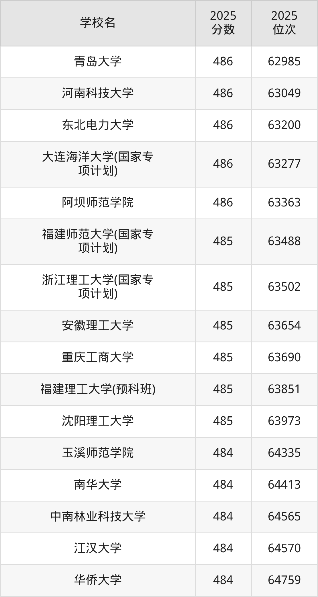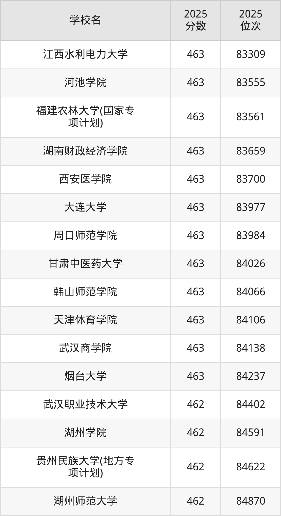 | 学校名 | 2025 分数 | 2025 位次 |