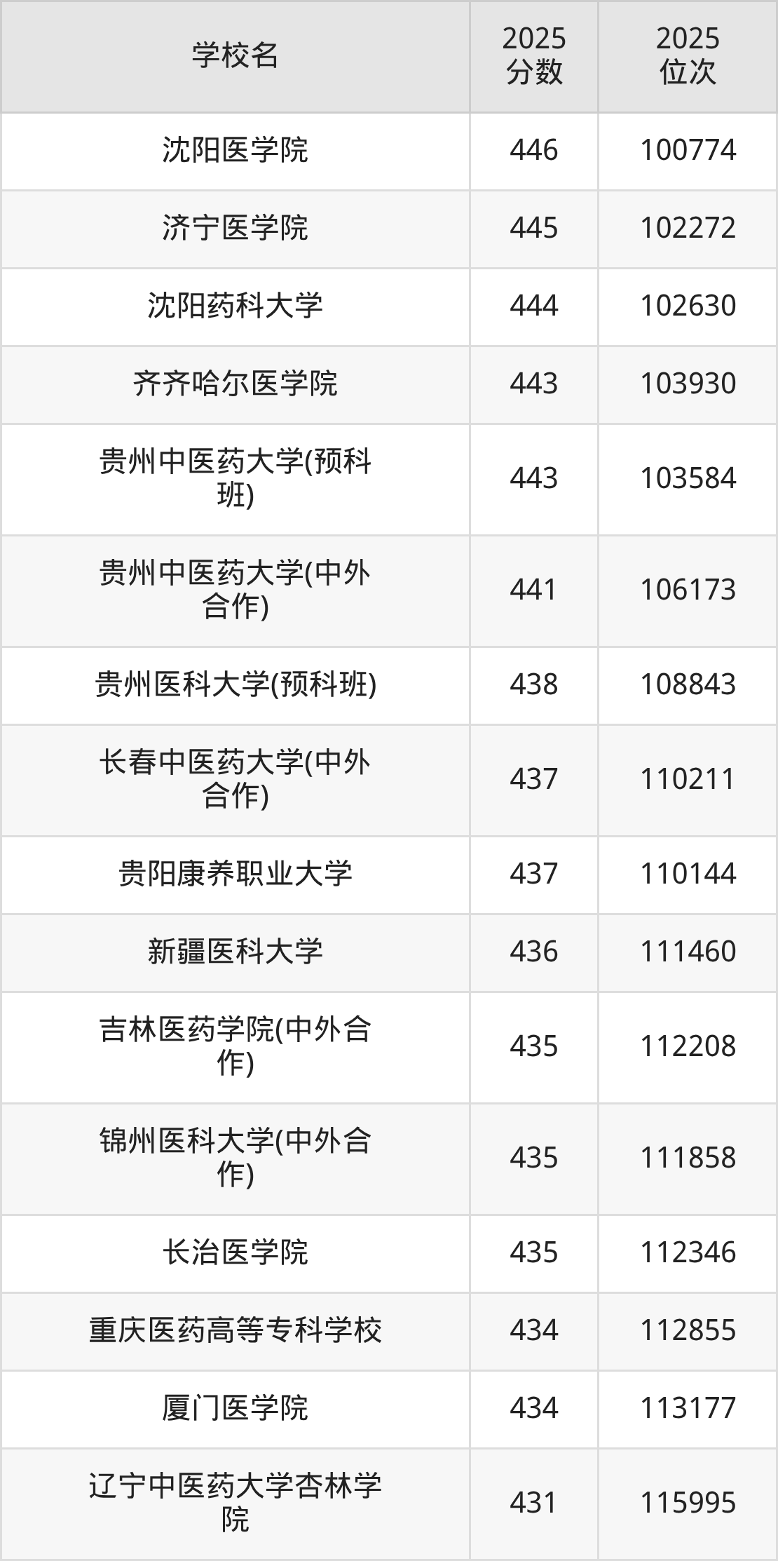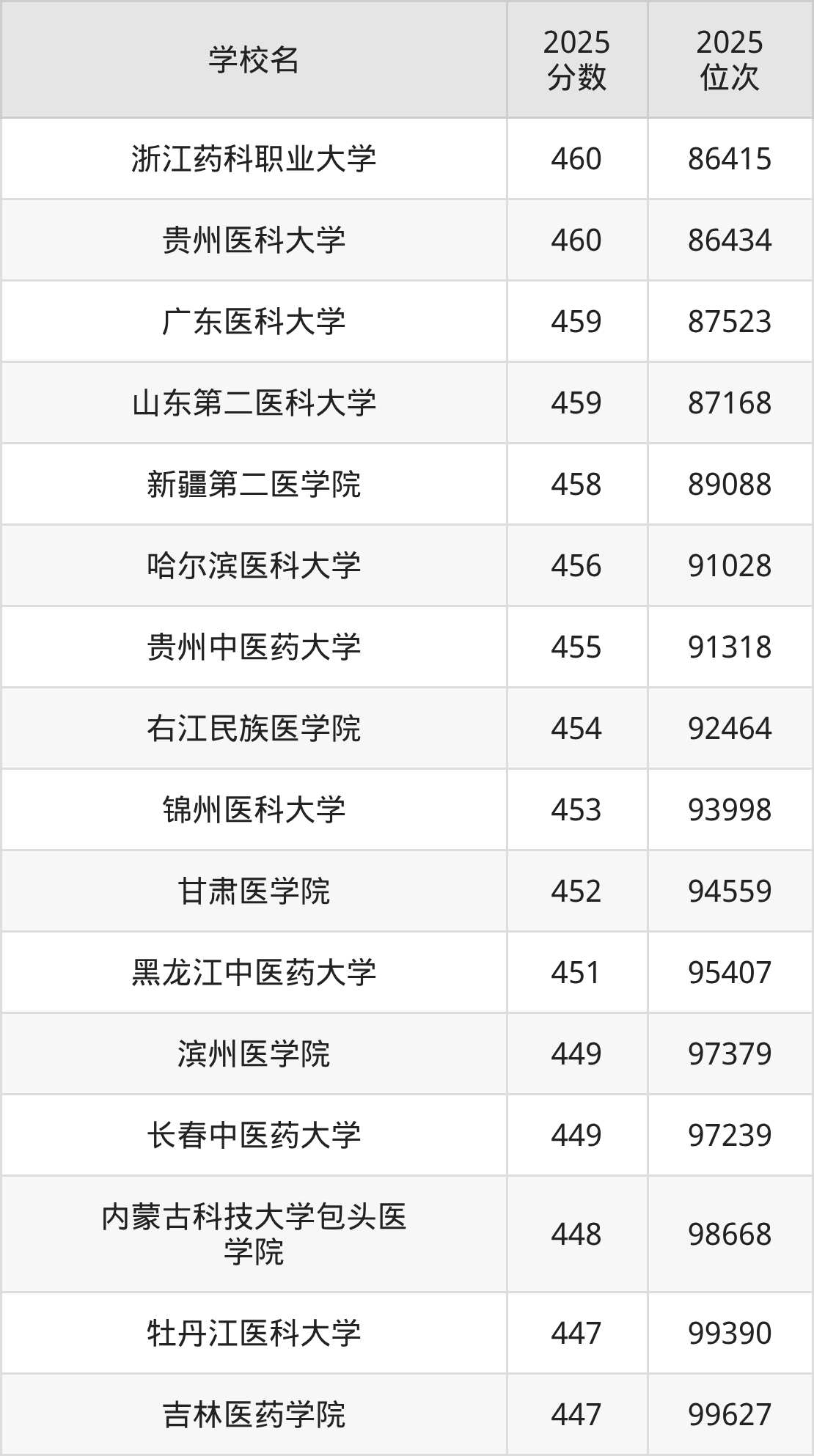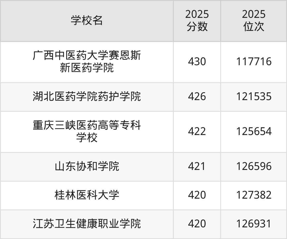 温馨提示:全国各省录取分数线不相同,本文以贵州省为例,为大家带来2025年录取分数线位于420到460分的医科大学名单汇总,并附上该分数段对应的位次排名区间,供查阅。