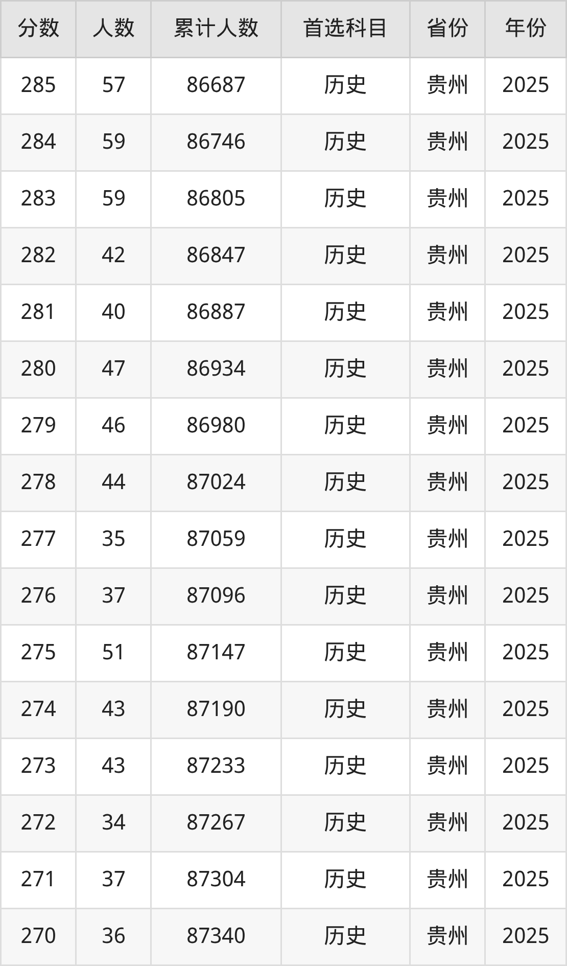 历史类200到300分的位次排名:85646名~88358名