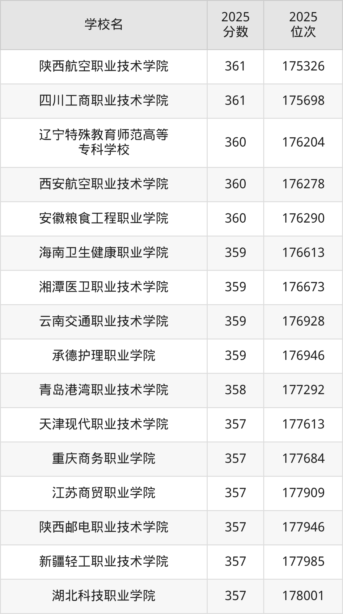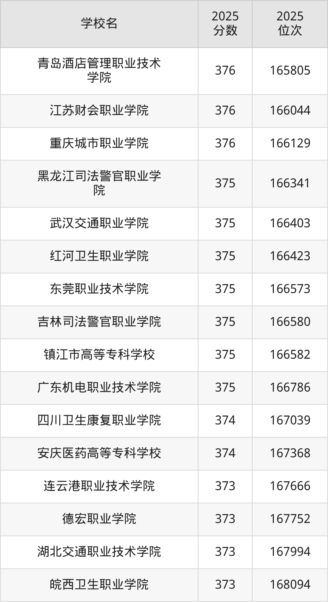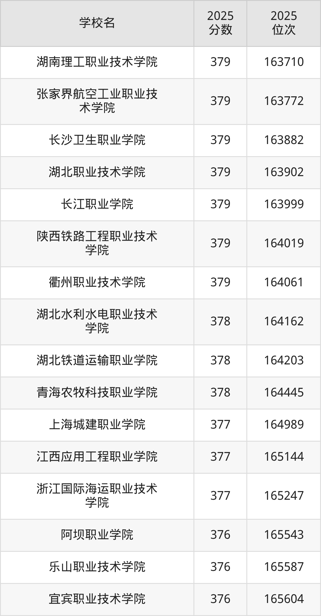 | 陕西航空职业技术学院 | 375 | 71955 |