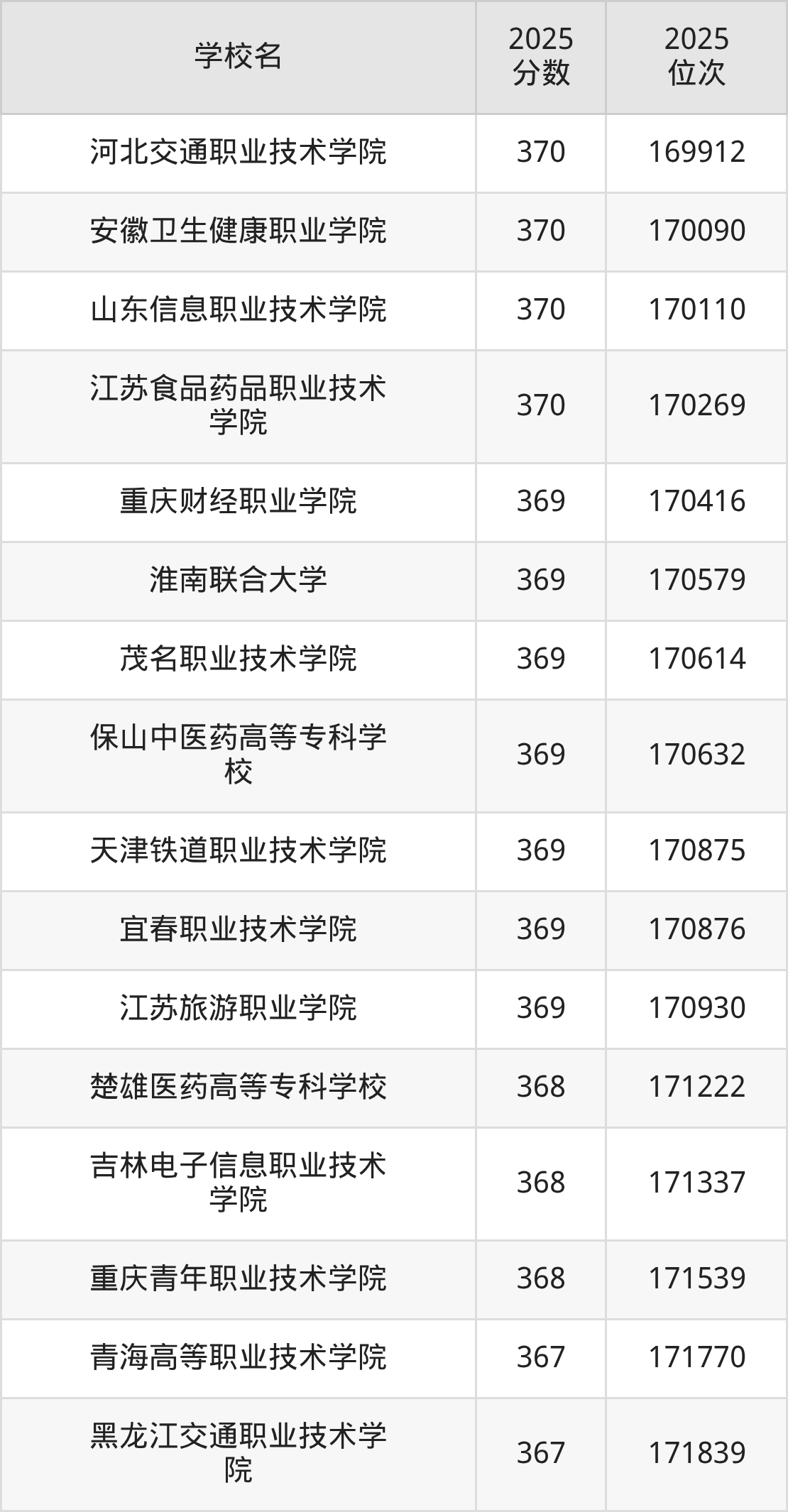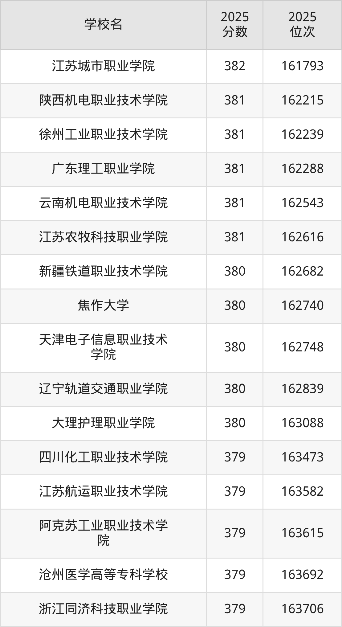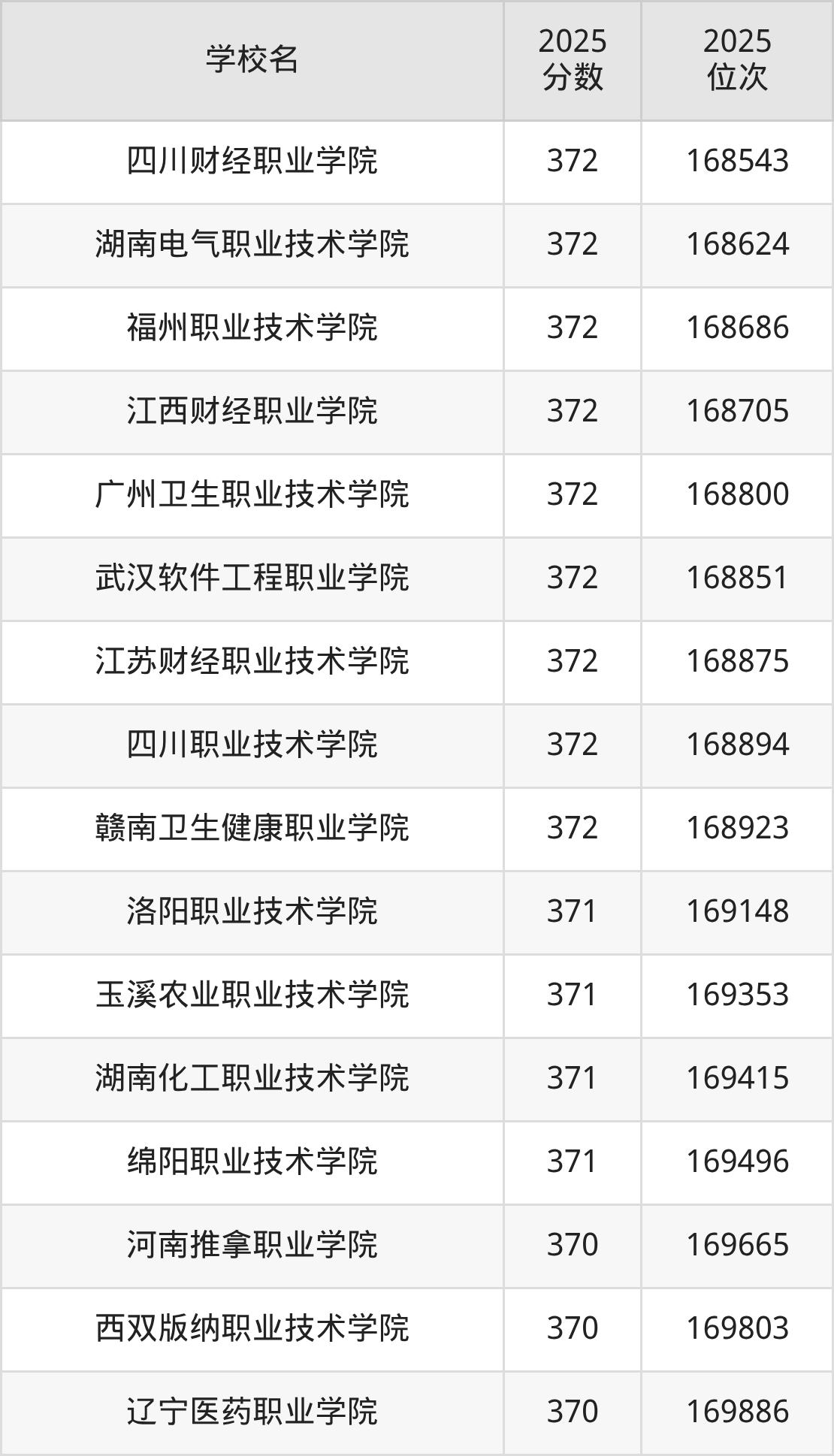 | 陕西航空职业技术学院 | 375 | 71955 |