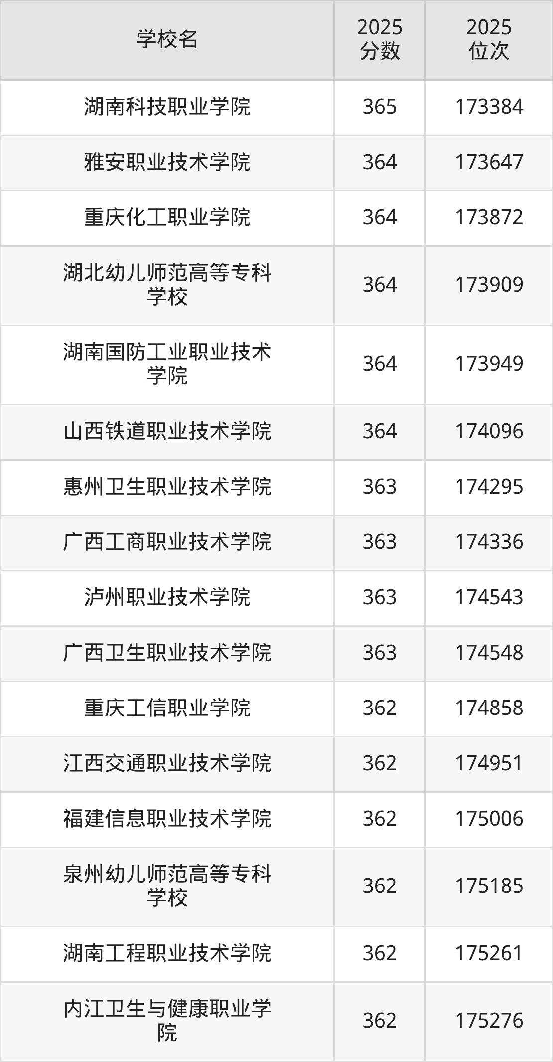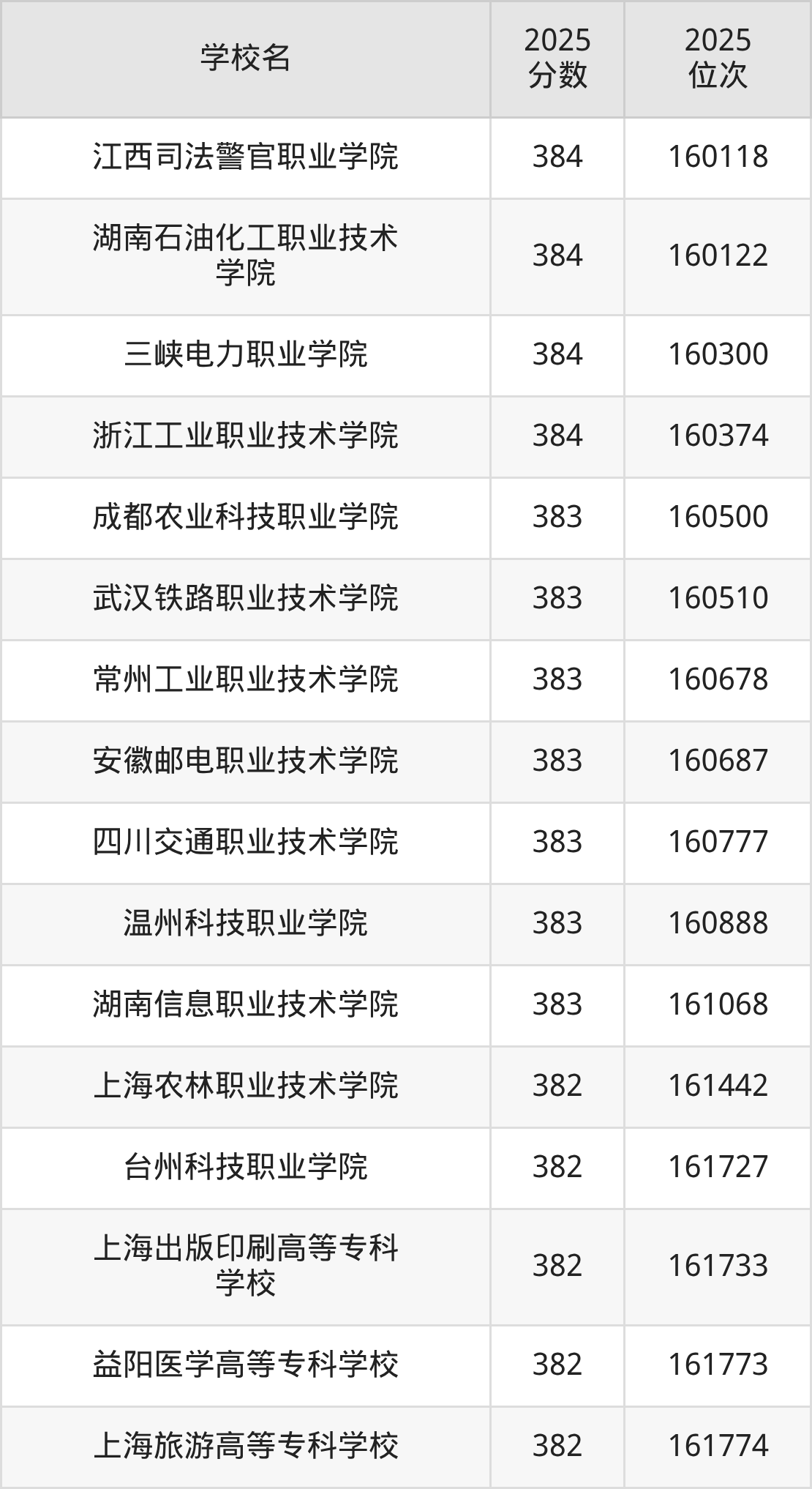| 上饶幼儿师范高等专科 学校 | 383 | 69405 |