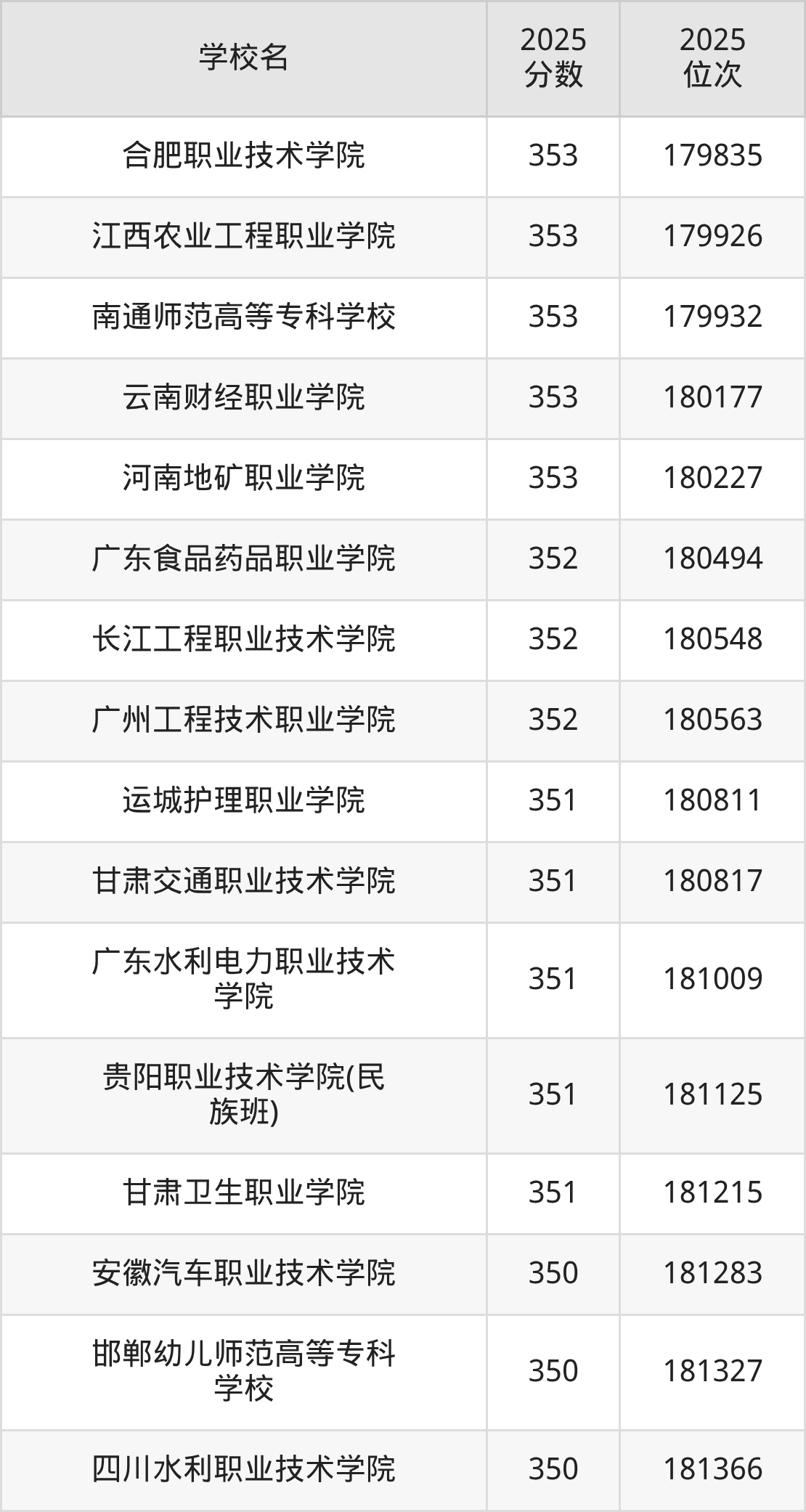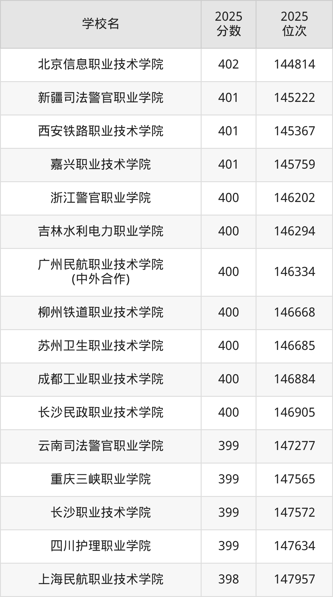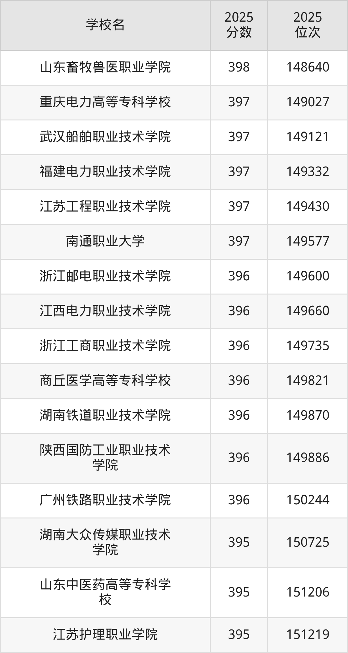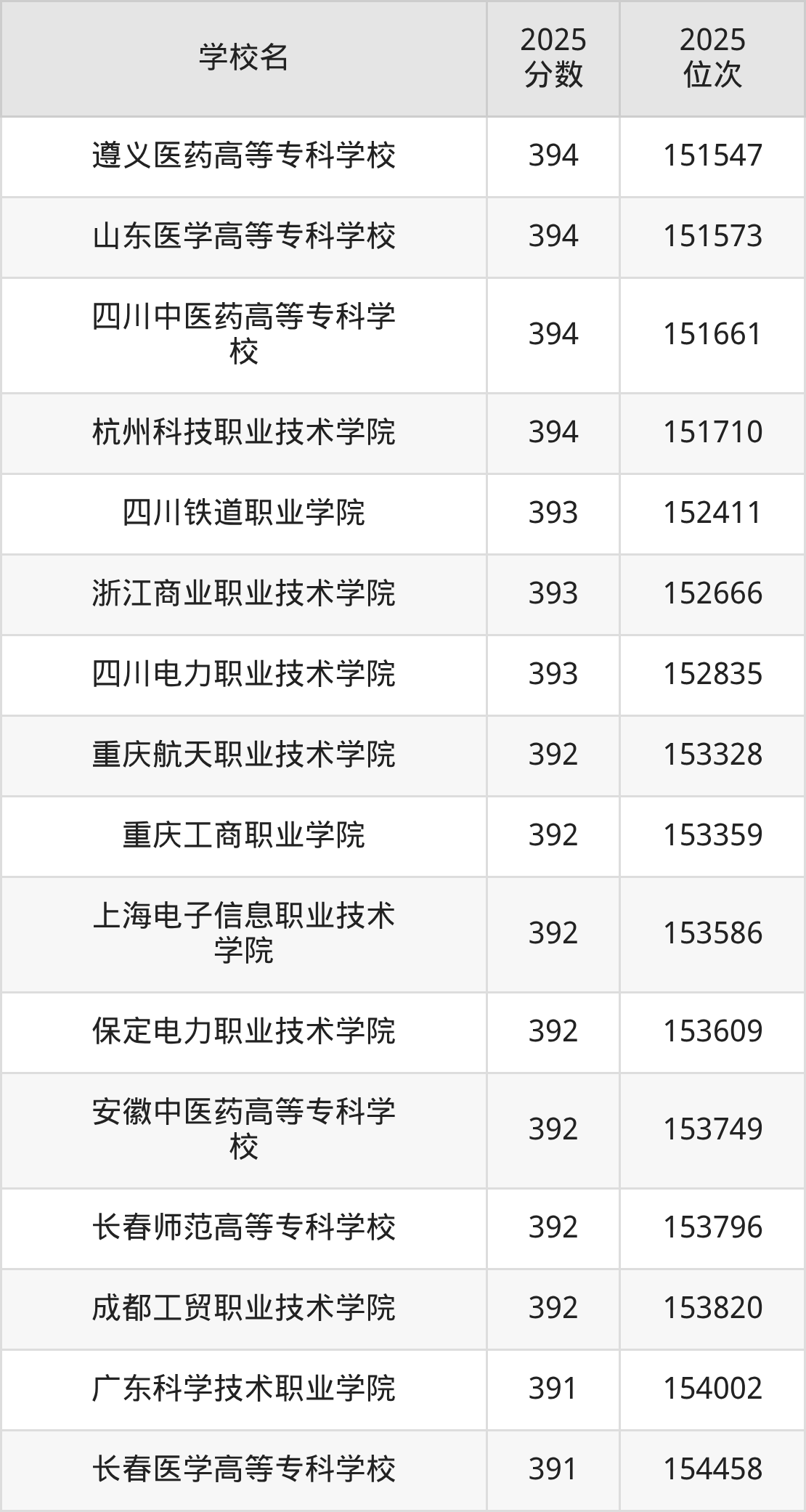 温馨提示:全国各省录取分数线不相同,本文以贵州省为例,为大家带来2025年录取分数线位于350到420分的公办专科学校名单汇总,并附上该分数段对应的位次排名区间,供查阅。