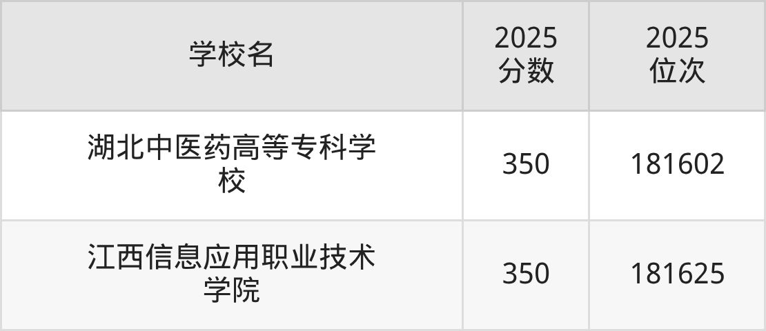 | 湖北生态工程职业技术 学院 | 356 | 77159 |