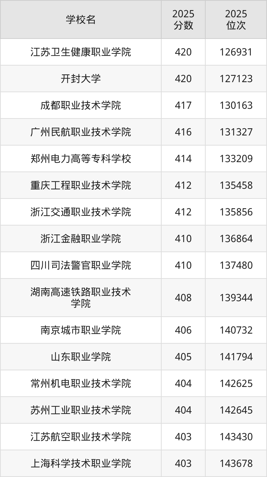 录取分数线的波动较大,下面圆梦小编为大家带来了2025年350到420分对应的位次排名区间,建议2026年位于该位次范围内的考生参考上文所整理的学校(本文仅针对贵州省)。