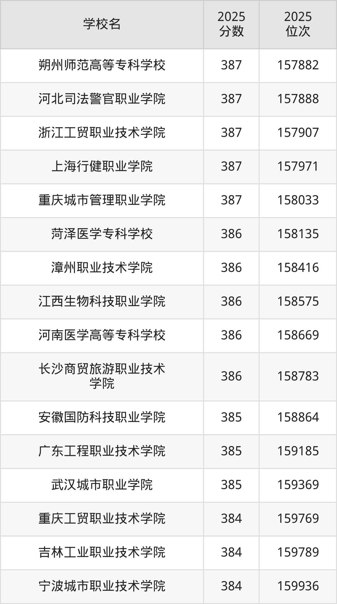 | 廊坊卫生职业学院 | 384 | 69128 |