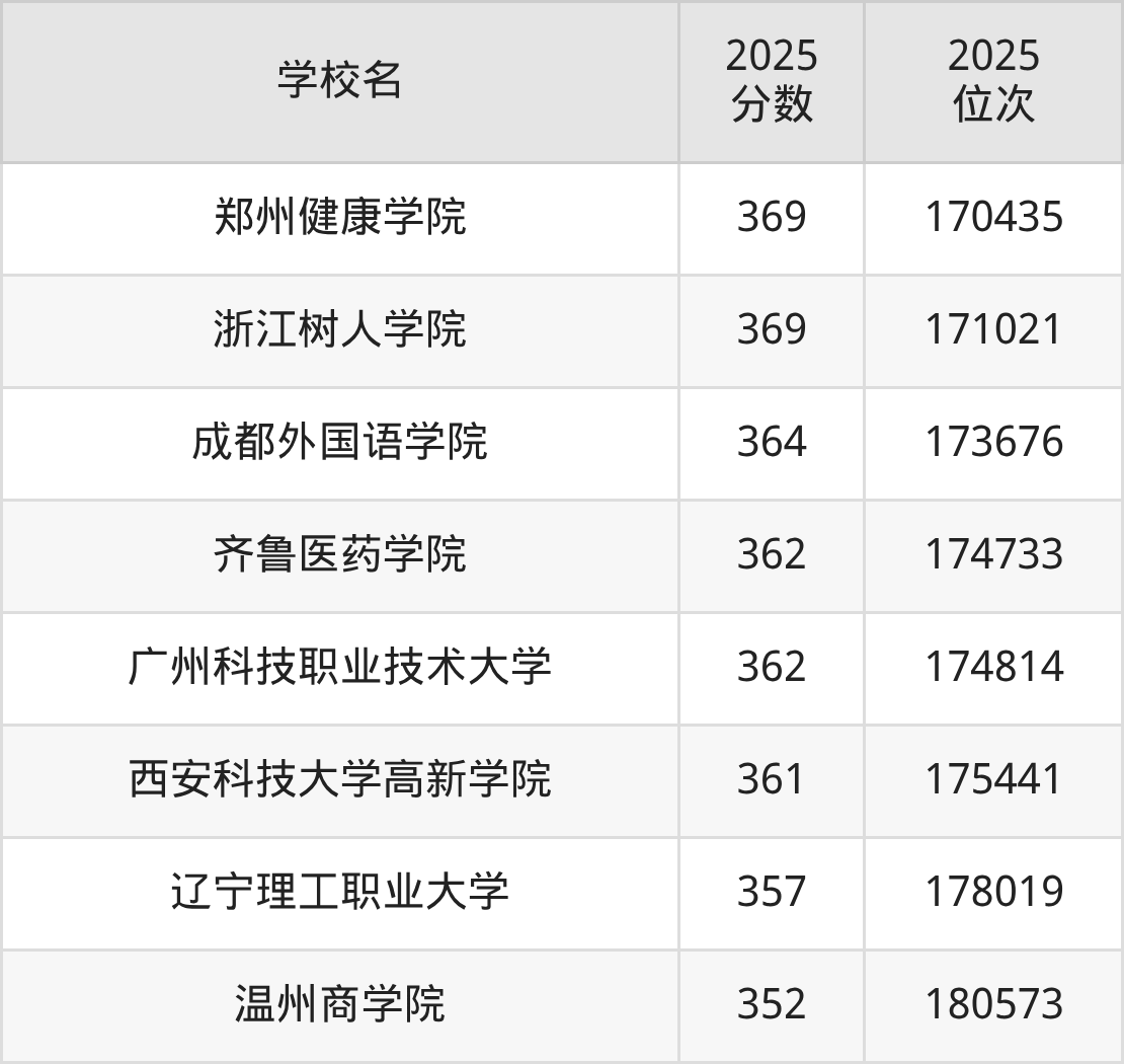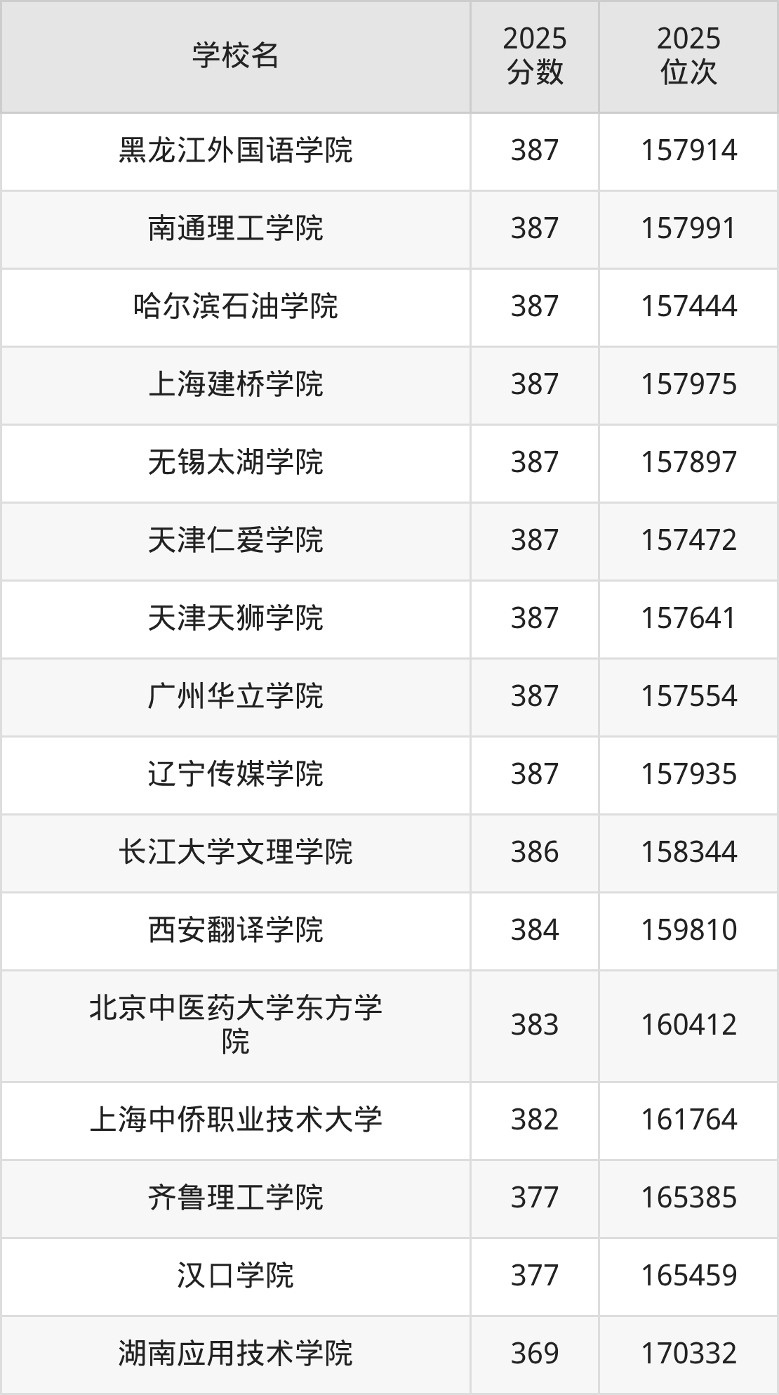 温馨提示:全国各省录取分数线不相同,本文以贵州省为例,为大家带来2025年录取分数线位于350到400分的二本民办大学名单汇总,并附上该分数段对应的位次排名区间,供查阅。