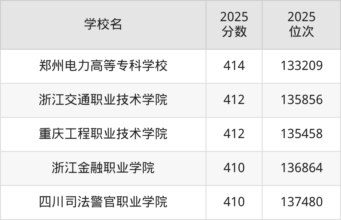 温馨提示:全国各省录取分数线不相同,本文以贵州省为例,为大家带来2025年录取分数线位于410到450分的公办专科学校名单汇总,并附上该分数段对应的位次排名区间,供查阅。