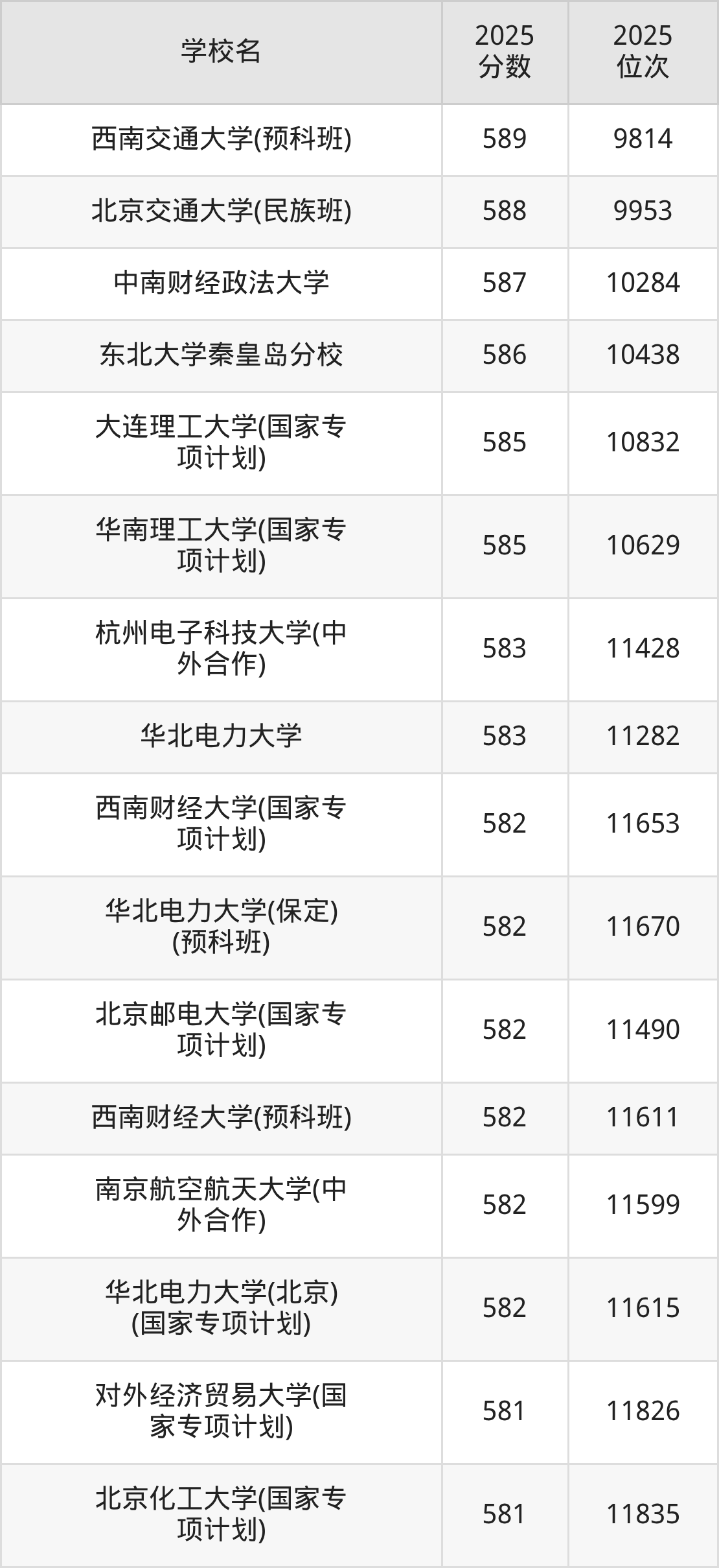 | 学校名 | 2025 分数 | 2025 位次 |