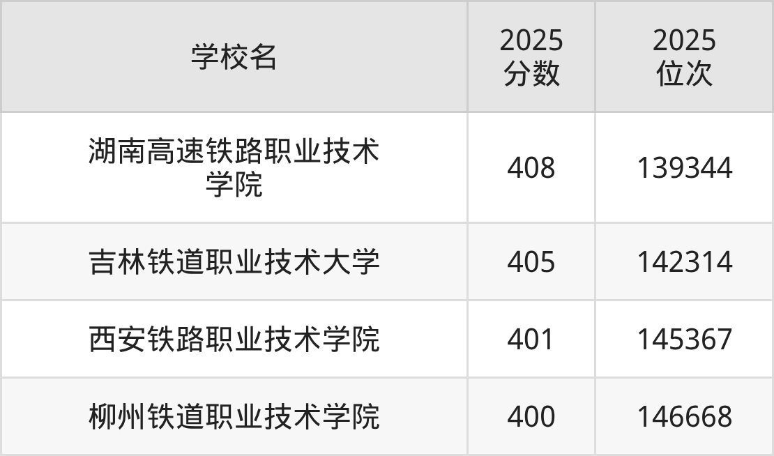 温馨提示:全国各省录取分数线不相同,本文以贵州省为例,为大家带来2025年录取分数线位于400到420分的铁路学校名单汇总,并附上该分数段对应的位次排名区间,供查阅。