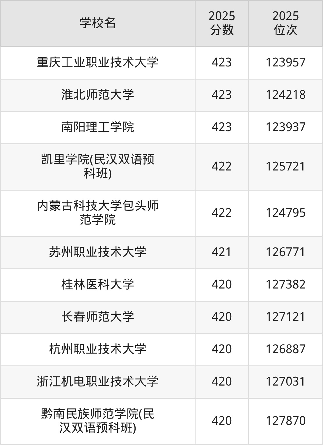 | 学校名 | 2025 分数 | 2025 位次 |