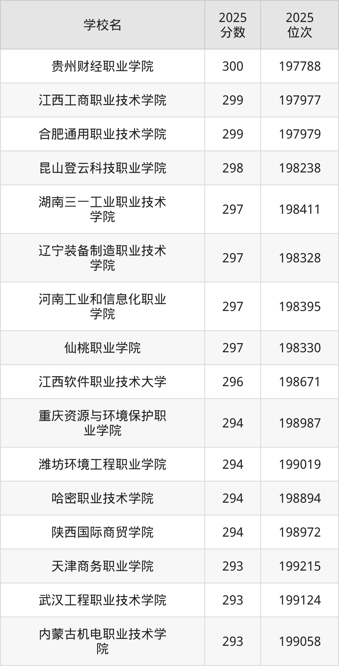 录取分数线的波动较大,下面圆梦小编为大家带来了2025年260到300分对应的位次排名区间,建议2026年位于该位次范围内的考生参考上文所整理的学校(本文仅针对贵州省)。