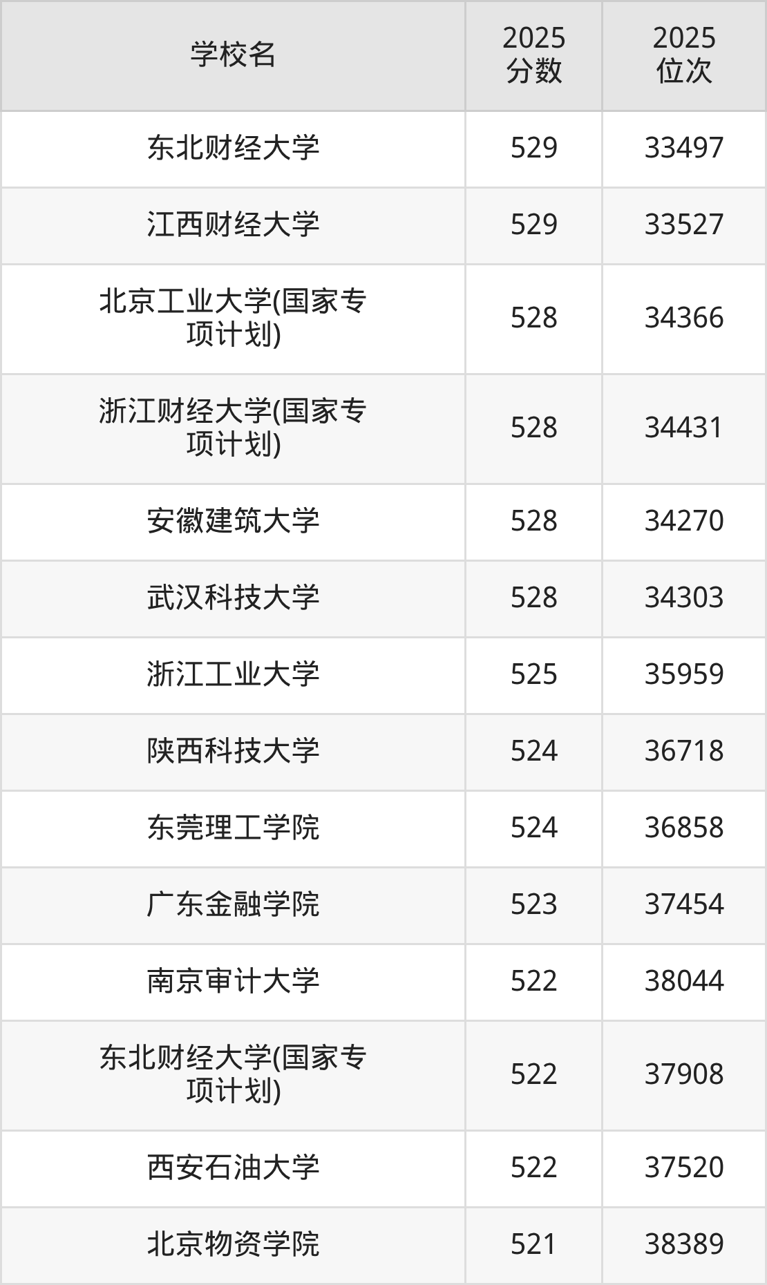 | 首都经济贸易大学(国 家专项计划) | 541 | 10243 |