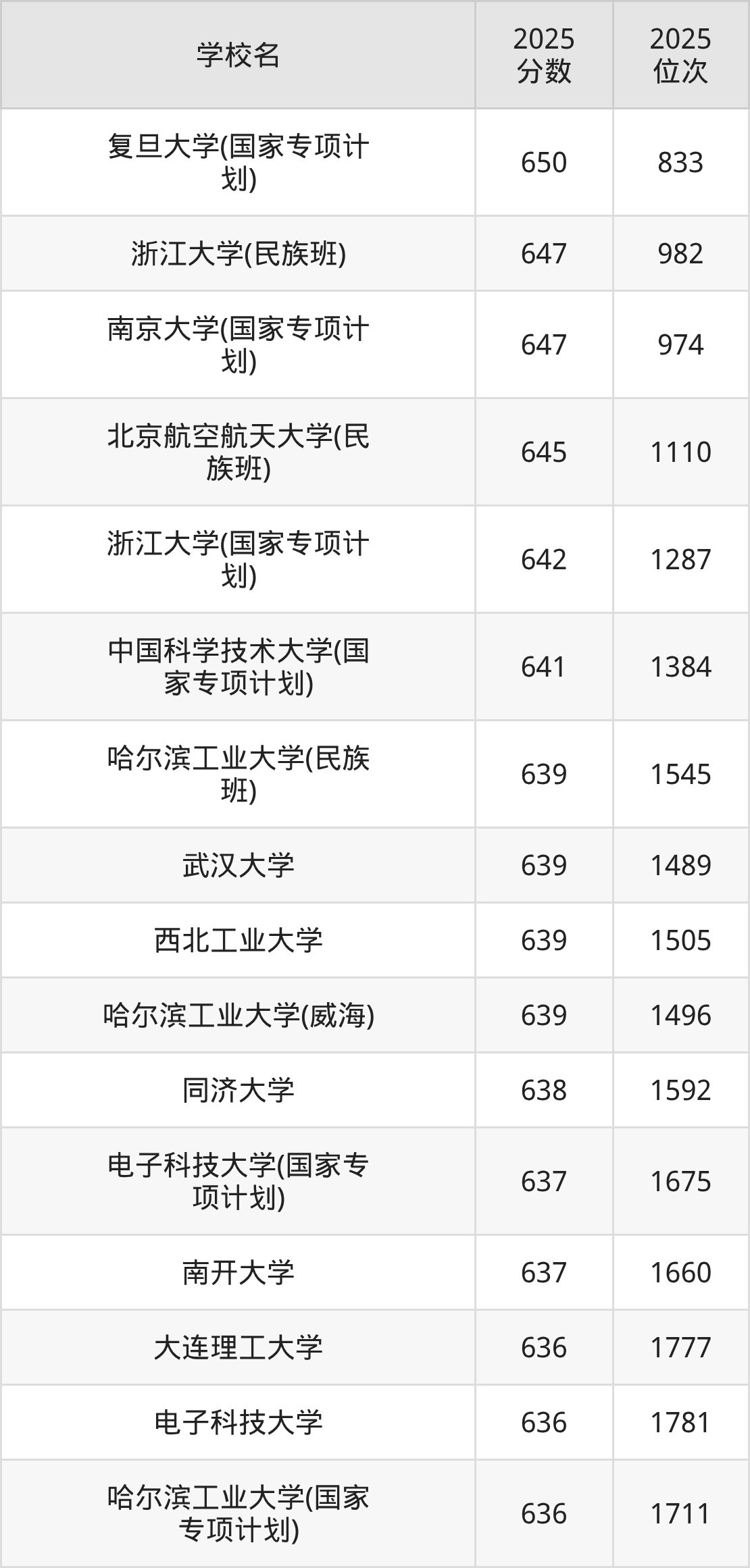 | 北京航空航天大学(国 家专项计划) | 634 | 517 |