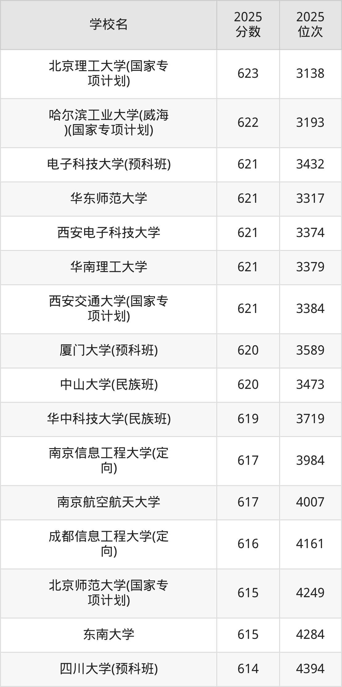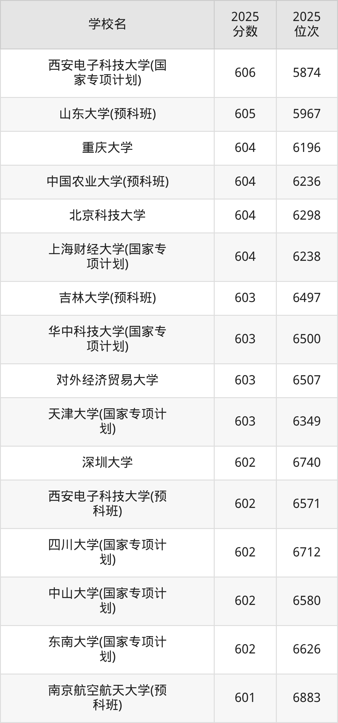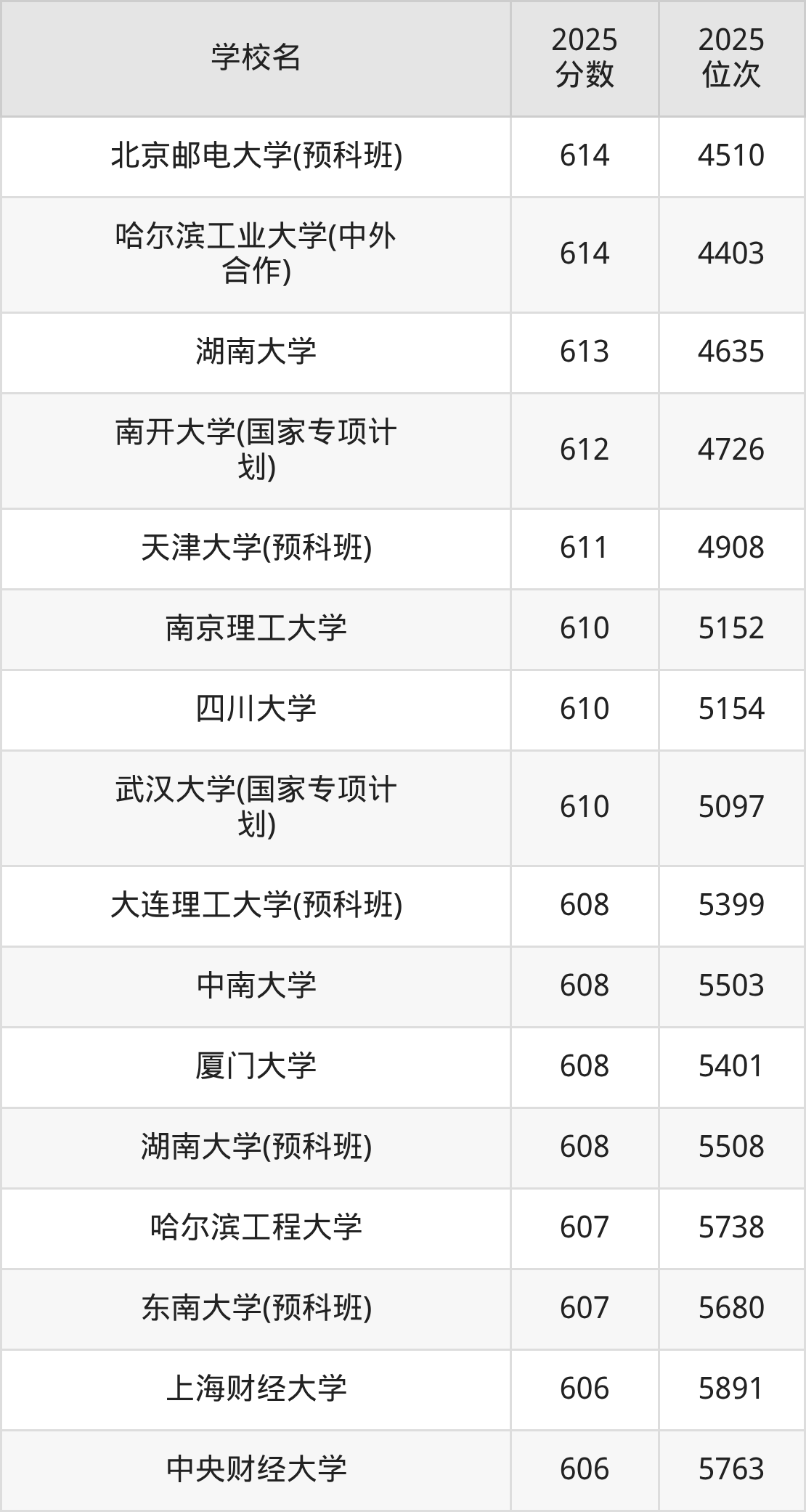 录取分数线的波动较大,下面圆梦小编为大家带来了2025年600到650分对应的位次排名区间,建议2026年位于该位次范围内的考生参考上文所整理的学校(本文仅针对贵州省)。