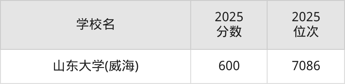 | 山东大学(威海)(国 家专项计划) | 601 | 2159 |