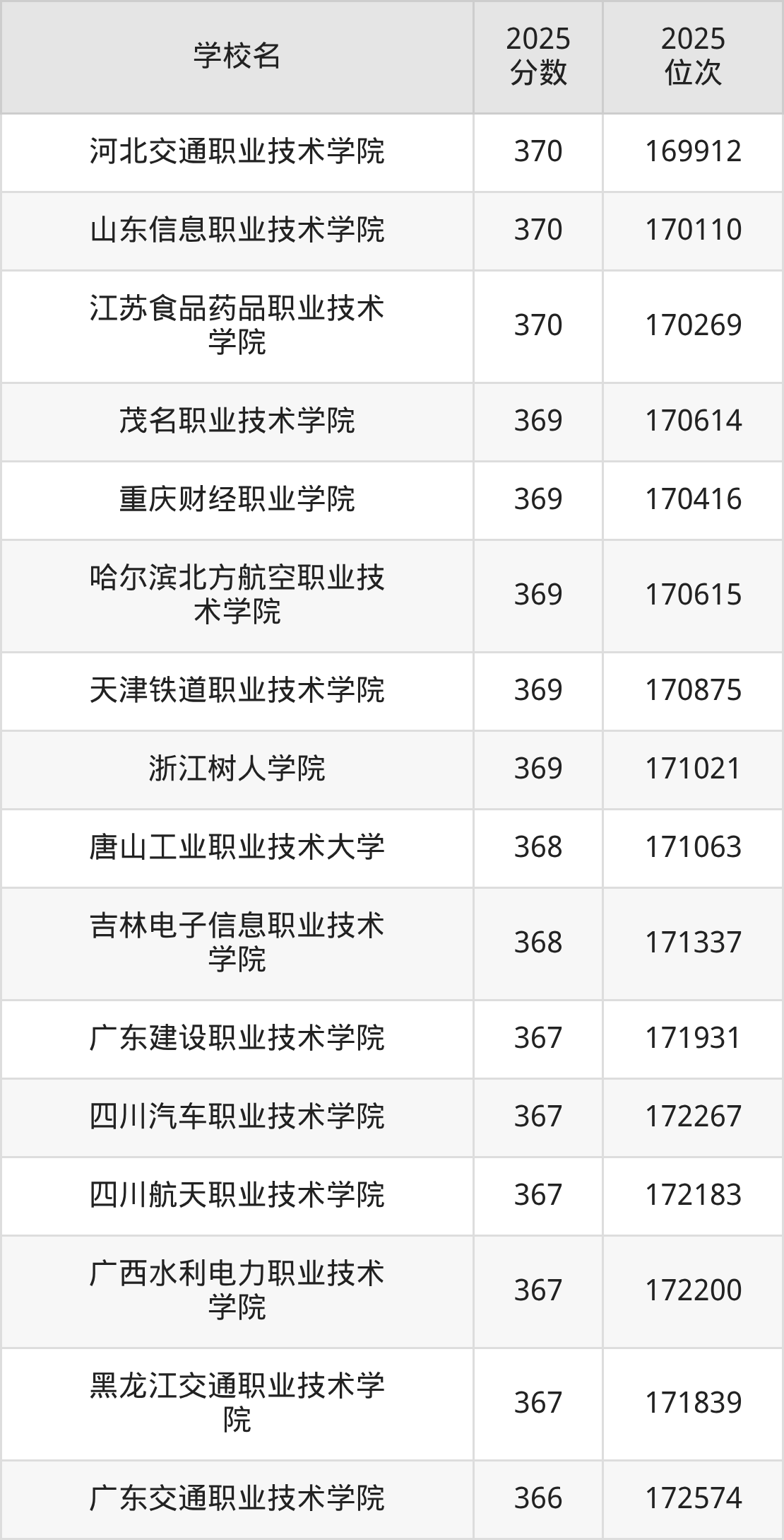 | 广西交通职业技术学院 | 376 | 71855 |