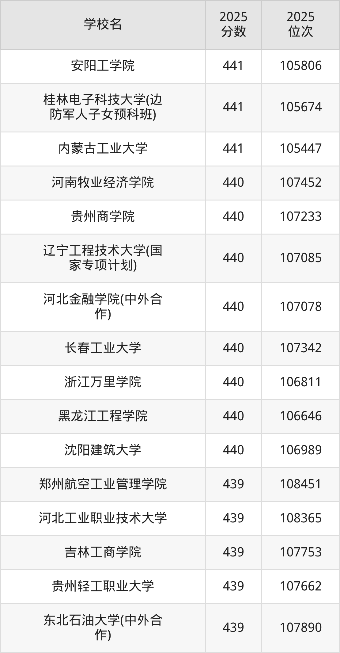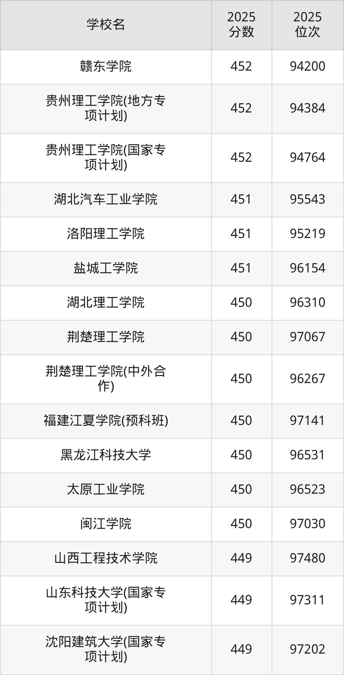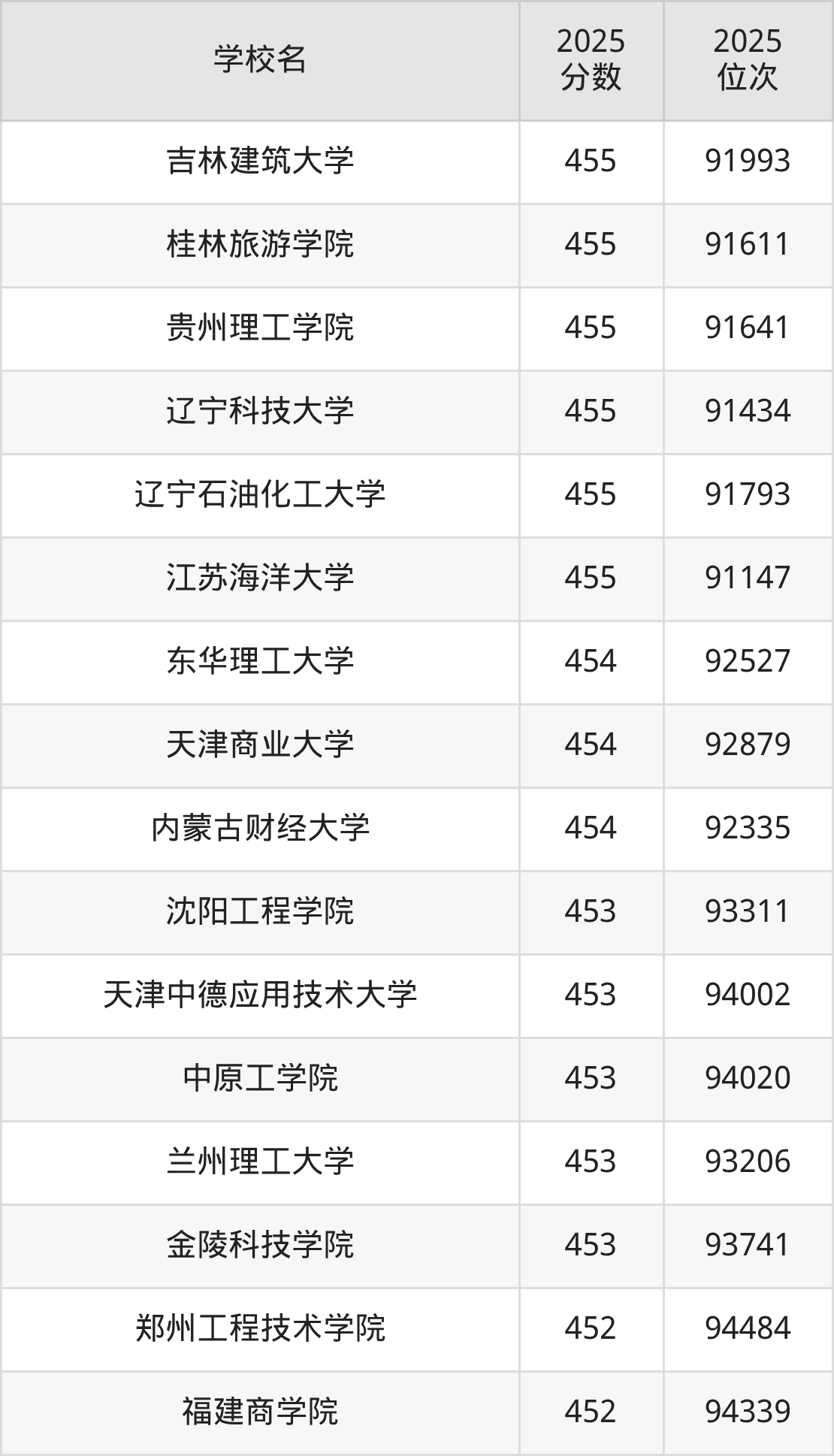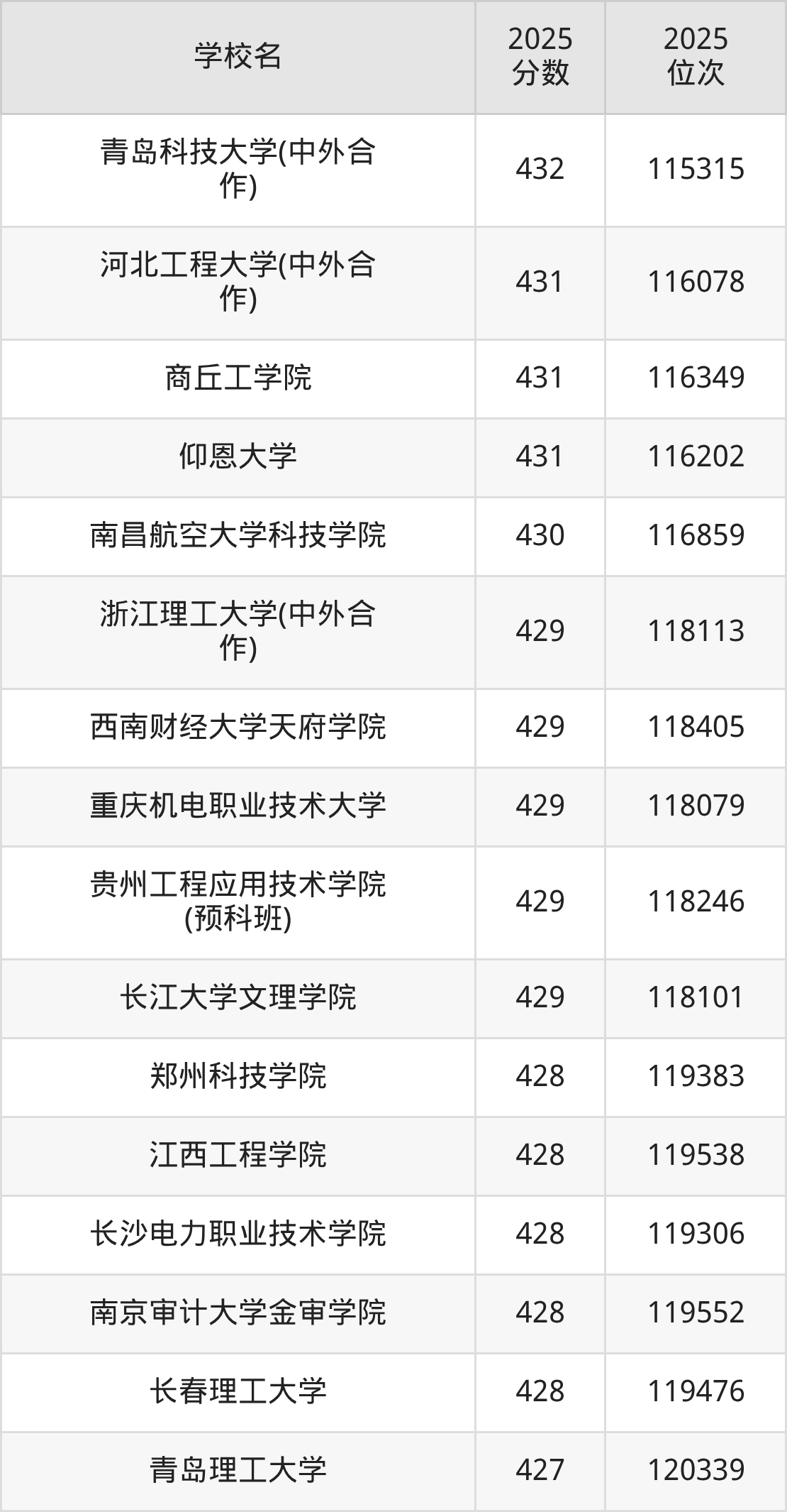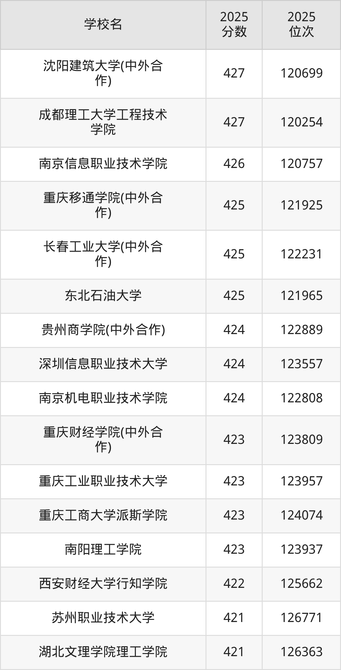 | 学校名 | 2025 分数 | 2025 位次 |