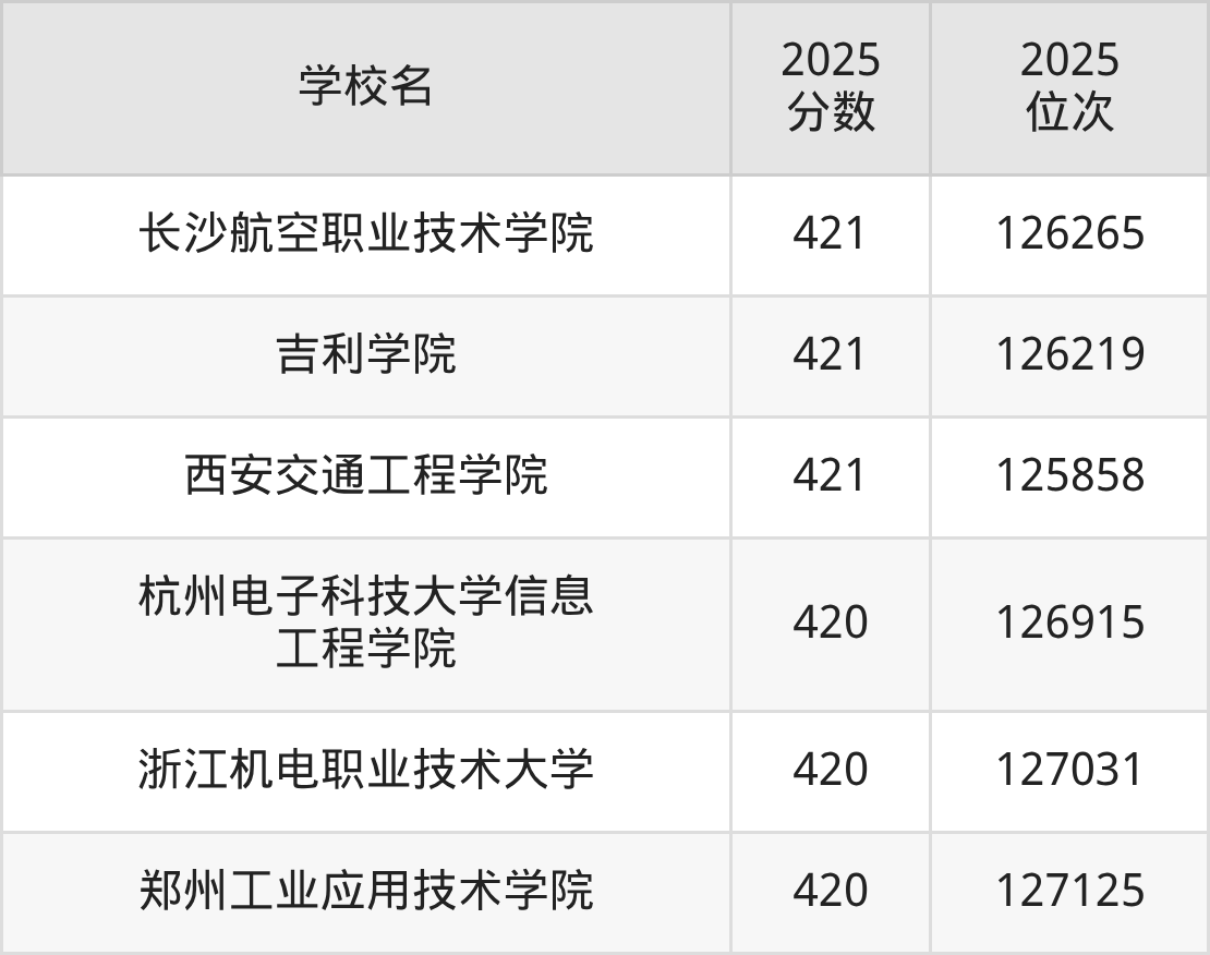 录取分数线的波动较大,下面圆梦小编为大家带来了2025年420到460分对应的位次排名区间,建议2026年位于该位次范围内的考生参考上文所整理的学校(本文仅针对贵州省)。