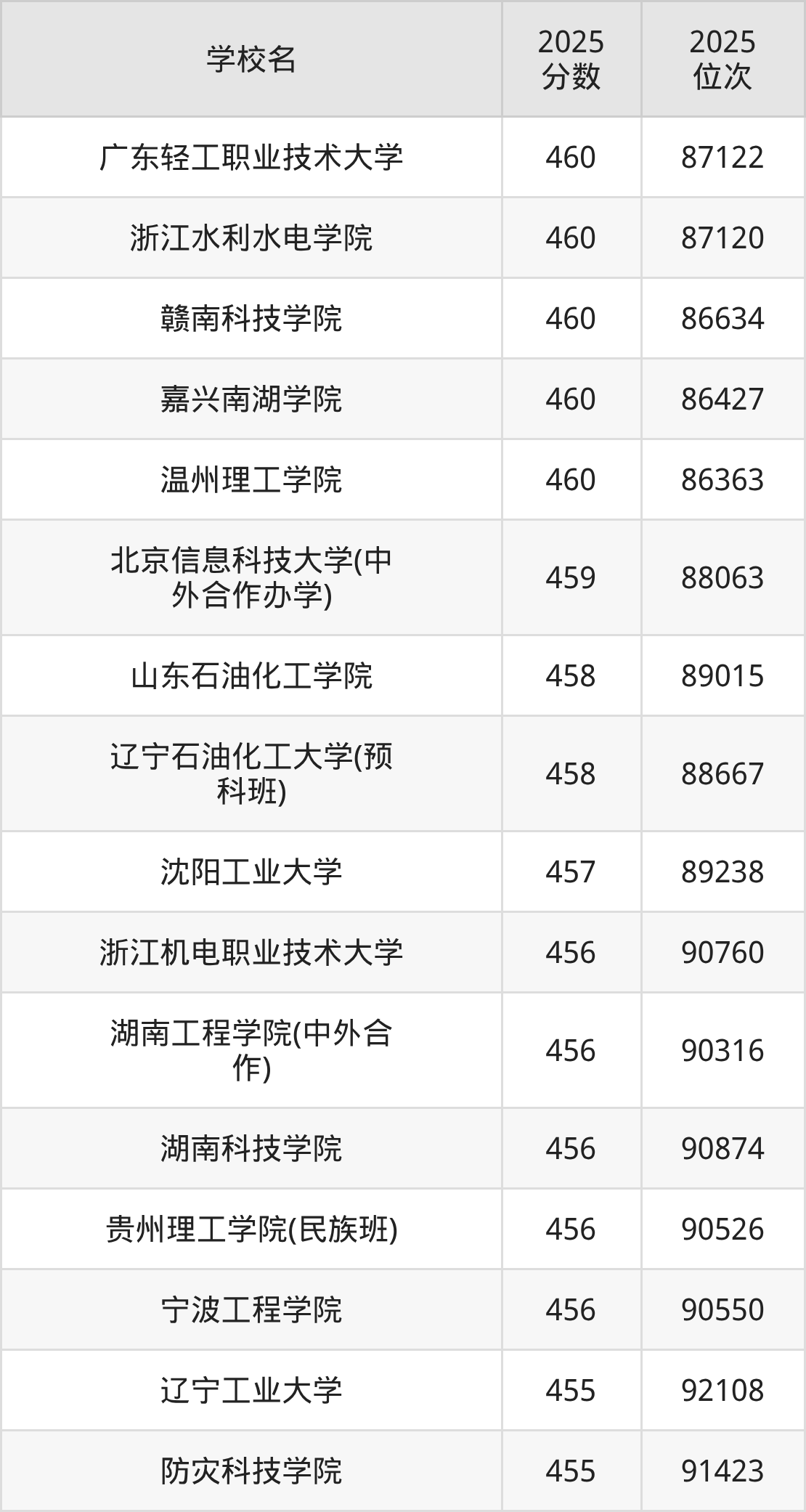 | 长春财经学院 | 460 | 38097 |