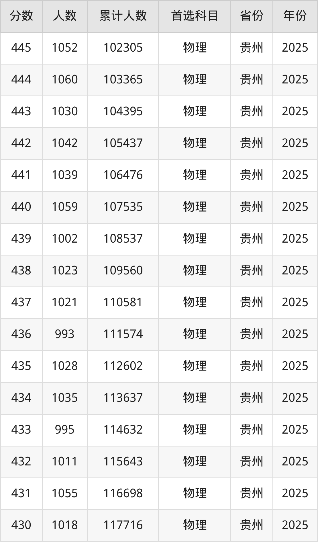 物理类420到460分的位次排名:86203名~127874名