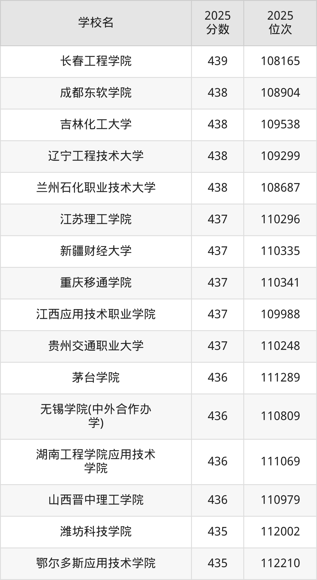 | 四川工程职业技术大学 | 438 | 47980 |
