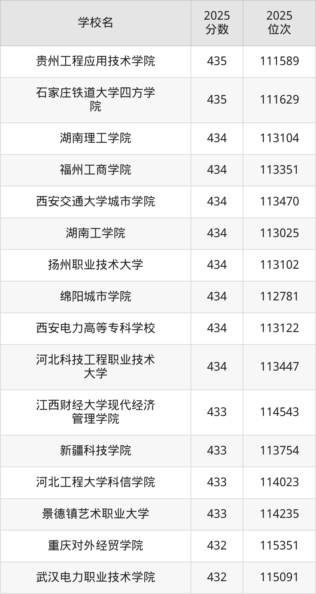 | 四川财经职业学院 | 434 | 49697 |