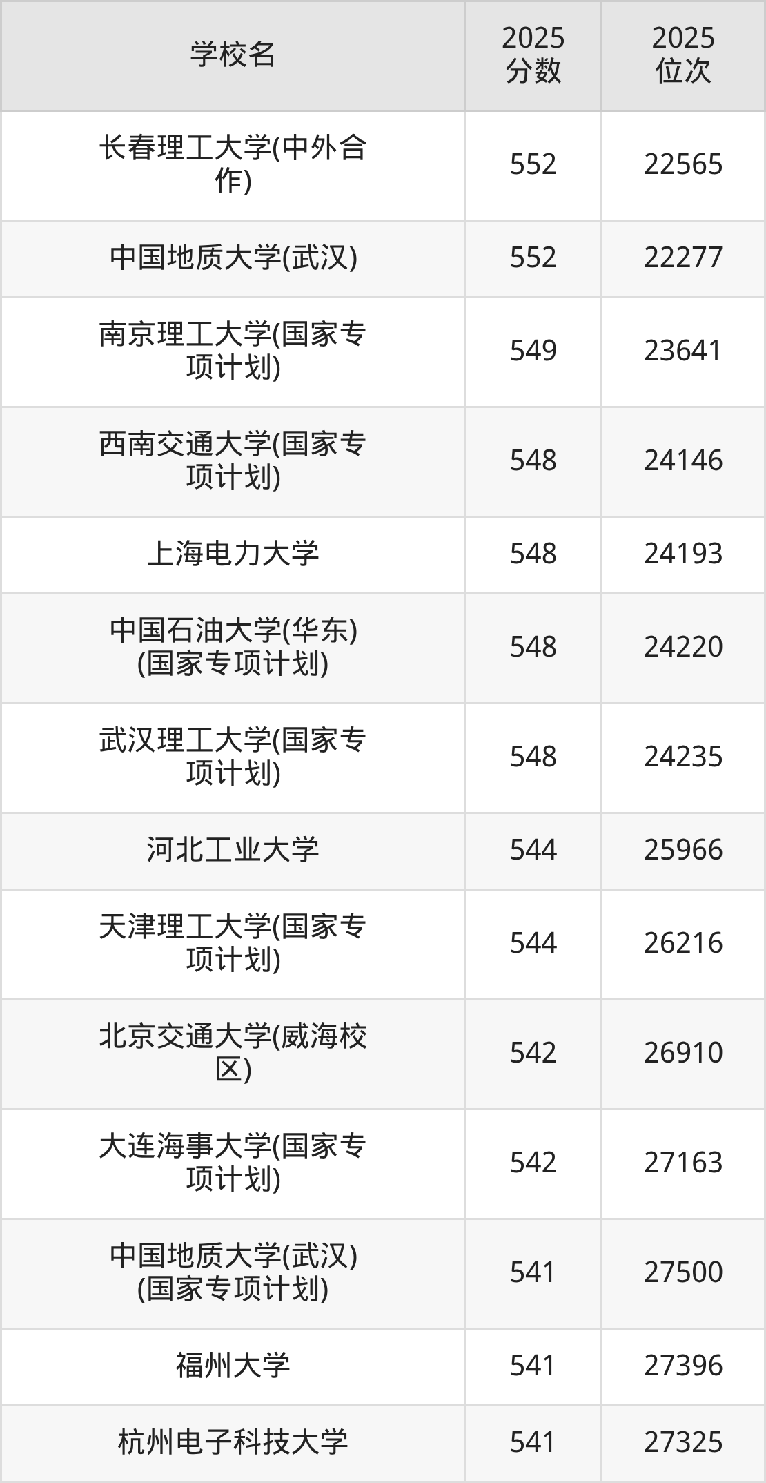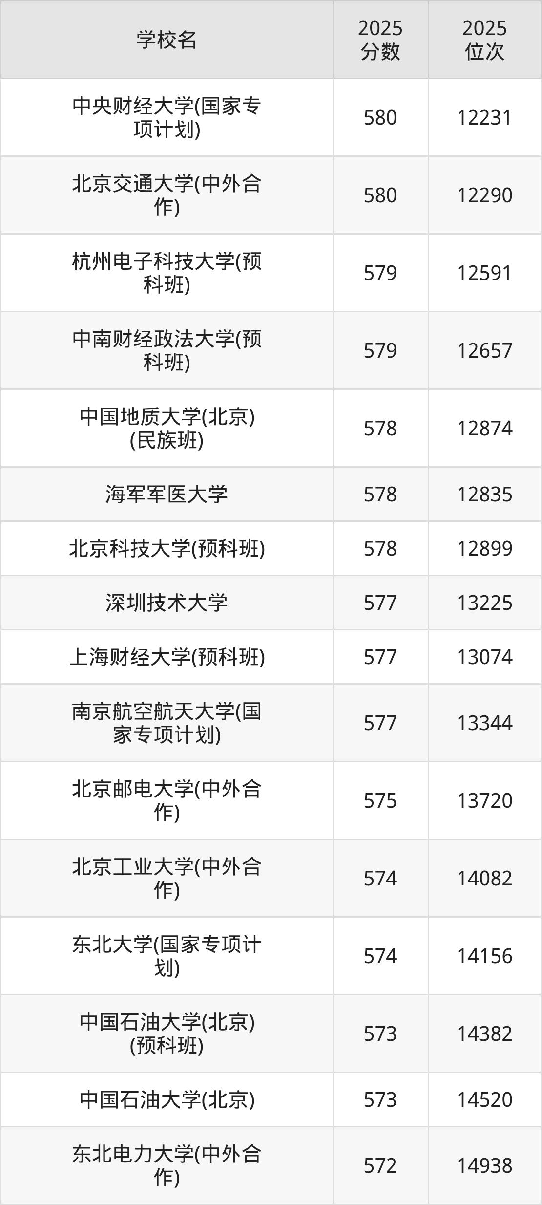 温馨提示:全国各省录取分数线不相同,本文以贵州省为例,为大家带来2025年录取分数线位于540到580分的理科大学名单汇总,并附上该分数段对应的位次排名区间,供查阅。
