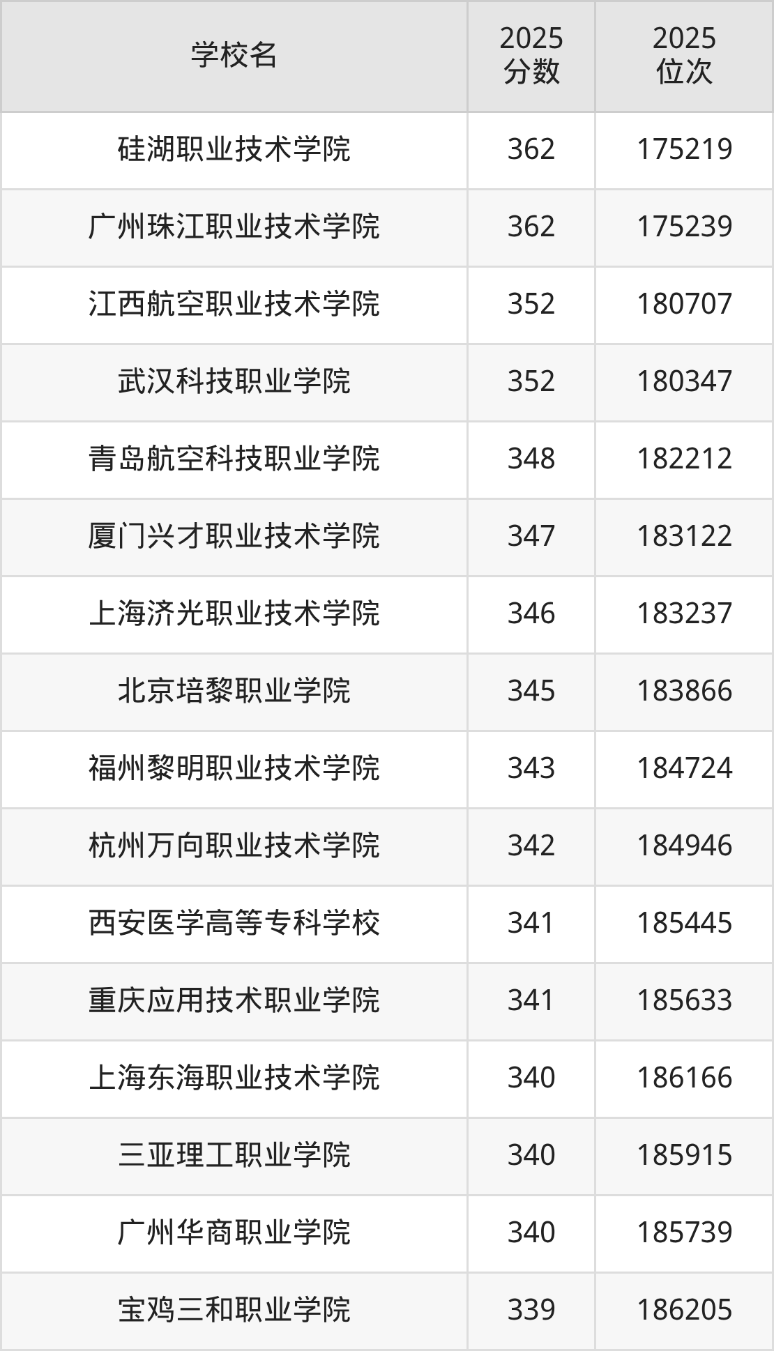 | 广东肇庆航空职业学院 | 341 | 80471 |