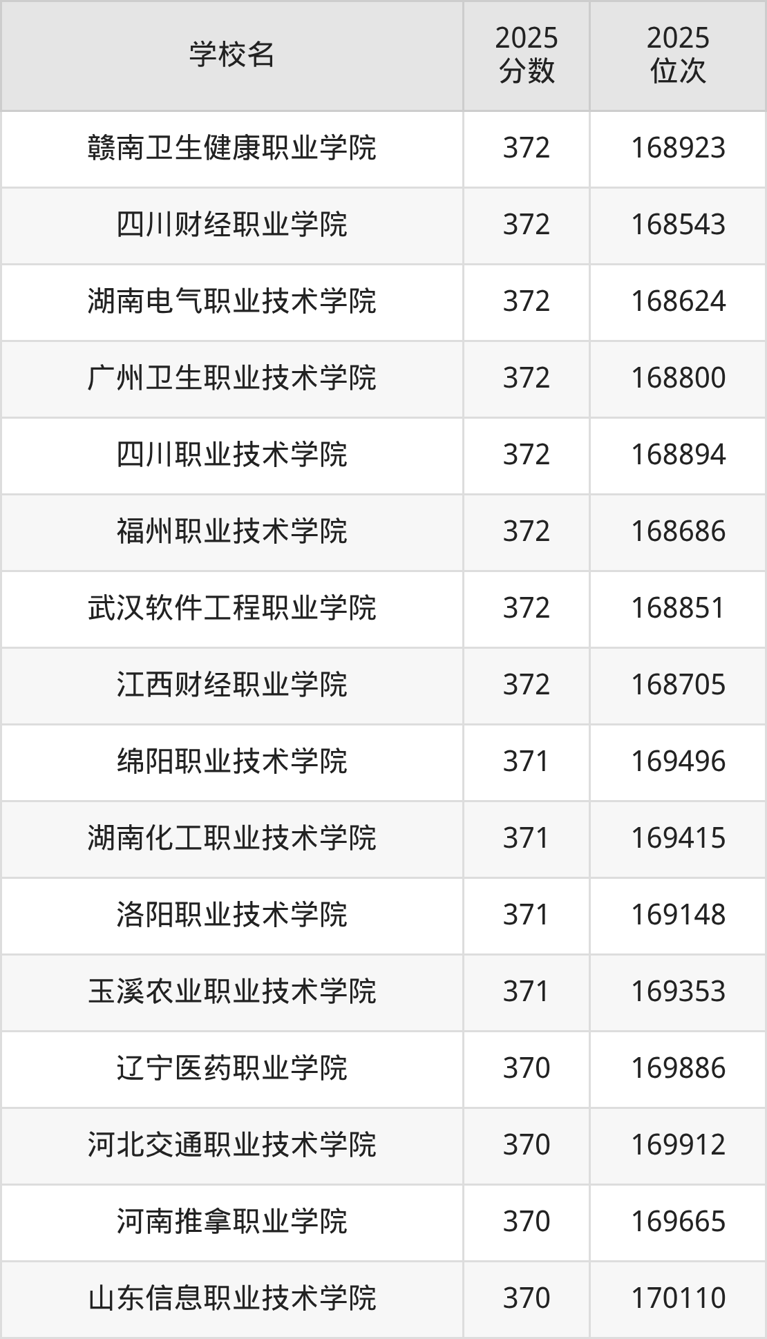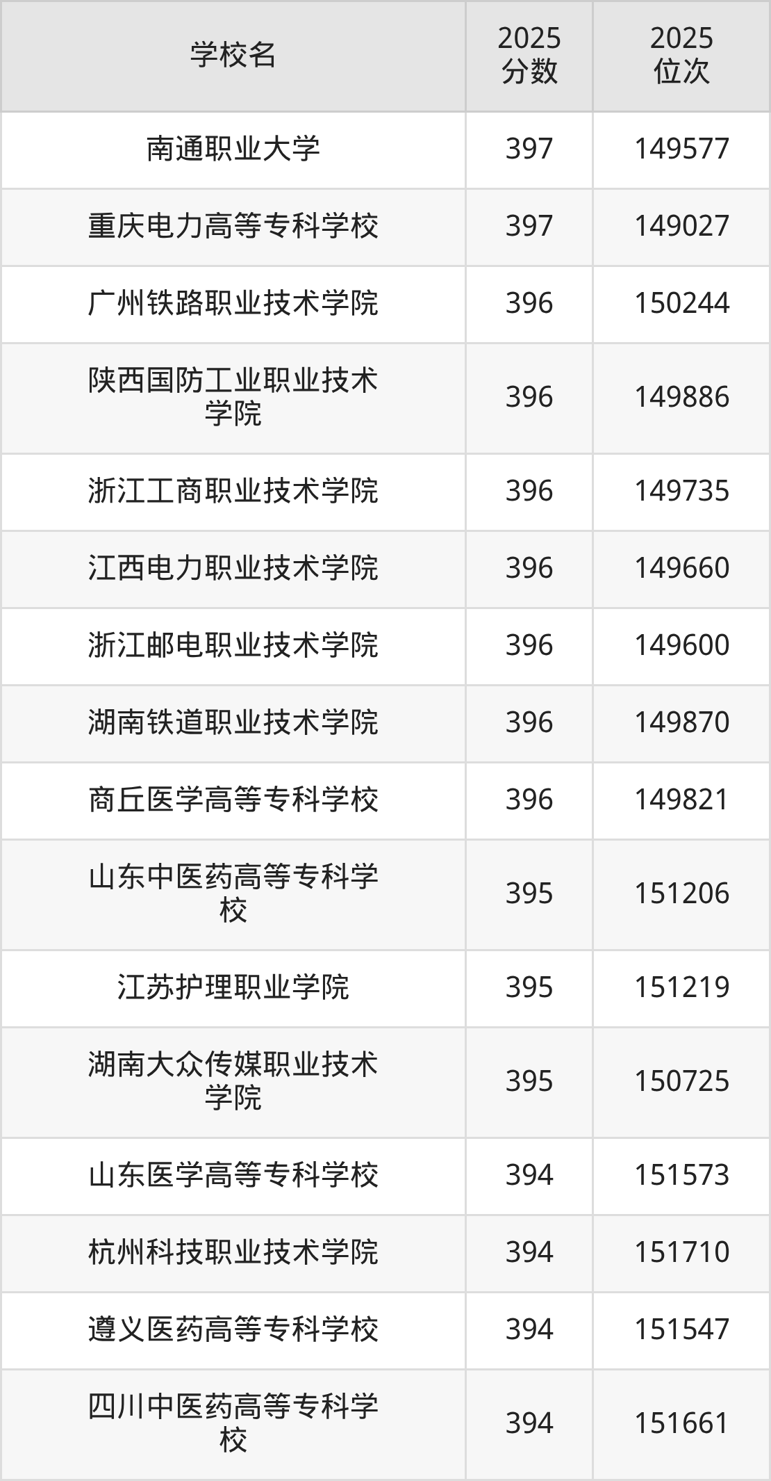 录取分数线的波动较大,下面圆梦小编为大家带来了2025年300到400分对应的位次排名区间,建议2026年位于该位次范围内的考生参考上文所整理的学校(本文仅针对贵州省)。