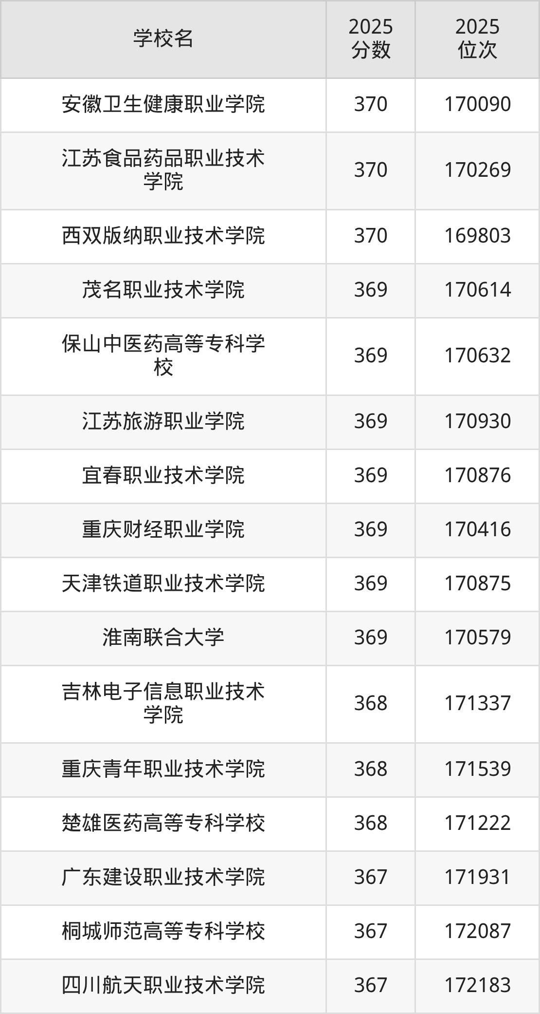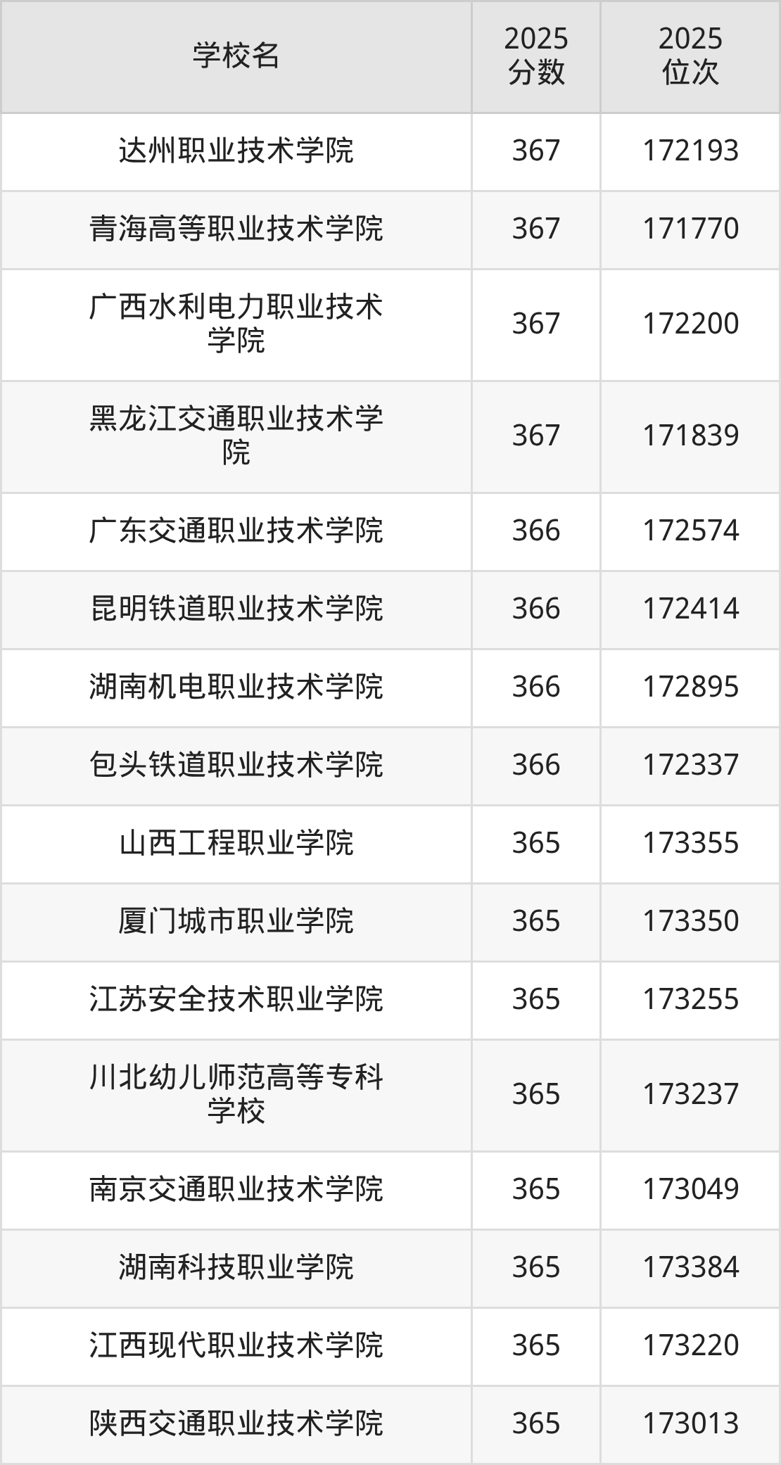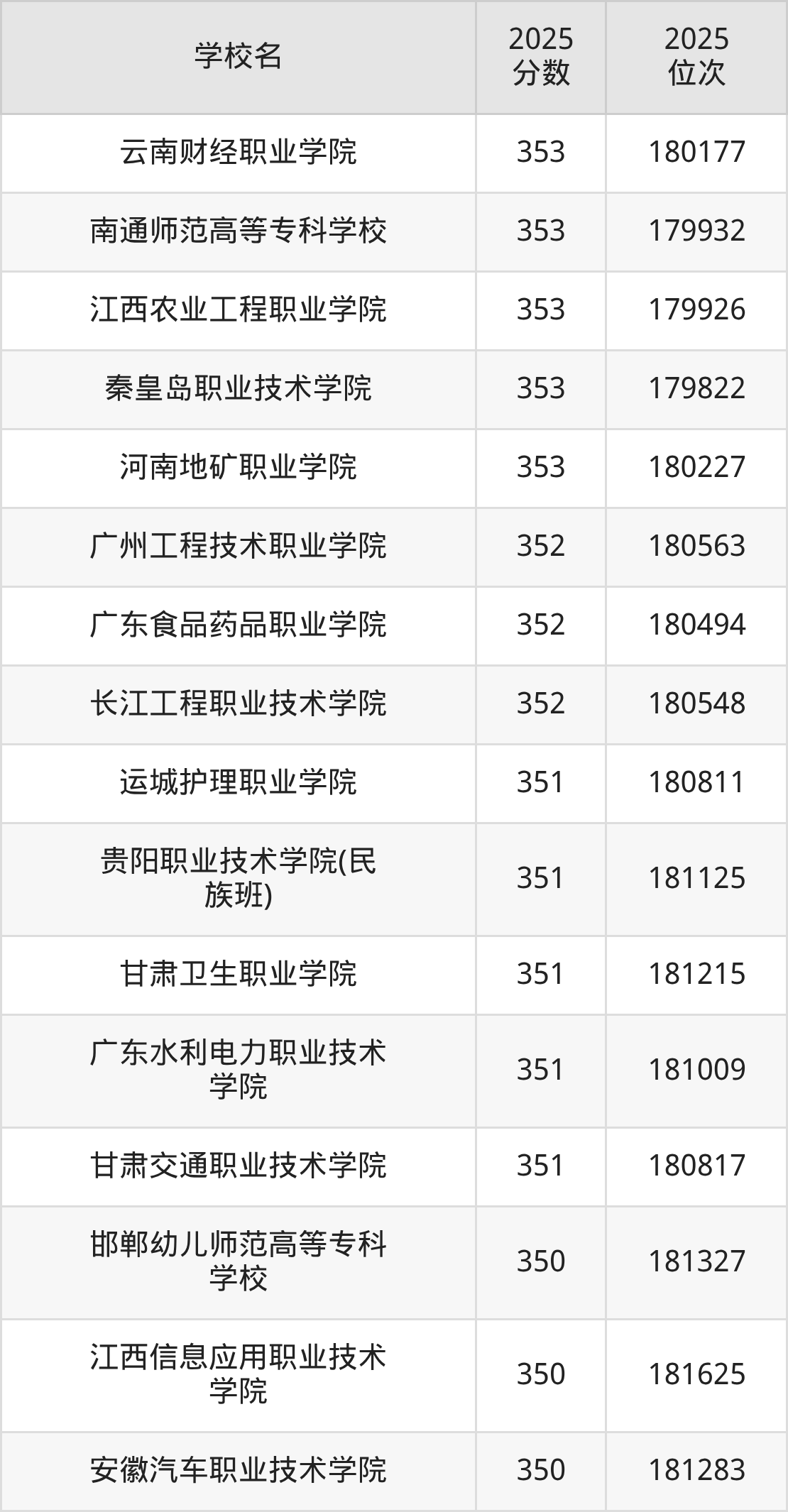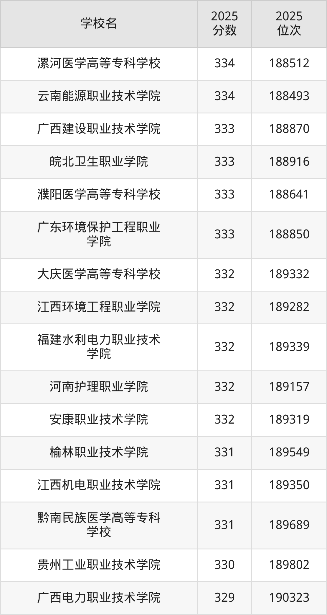 温馨提示:全国各省录取分数线不相同,本文以贵州省为例,为大家带来2025年录取分数线位于300到400分的公办专科学校名单汇总,并附上该分数段对应的位次排名区间,供查阅。