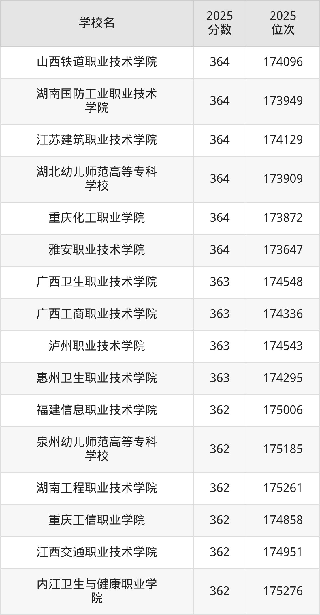 | 上饶幼儿师范高等专科 学校 | 383 | 69405 |
