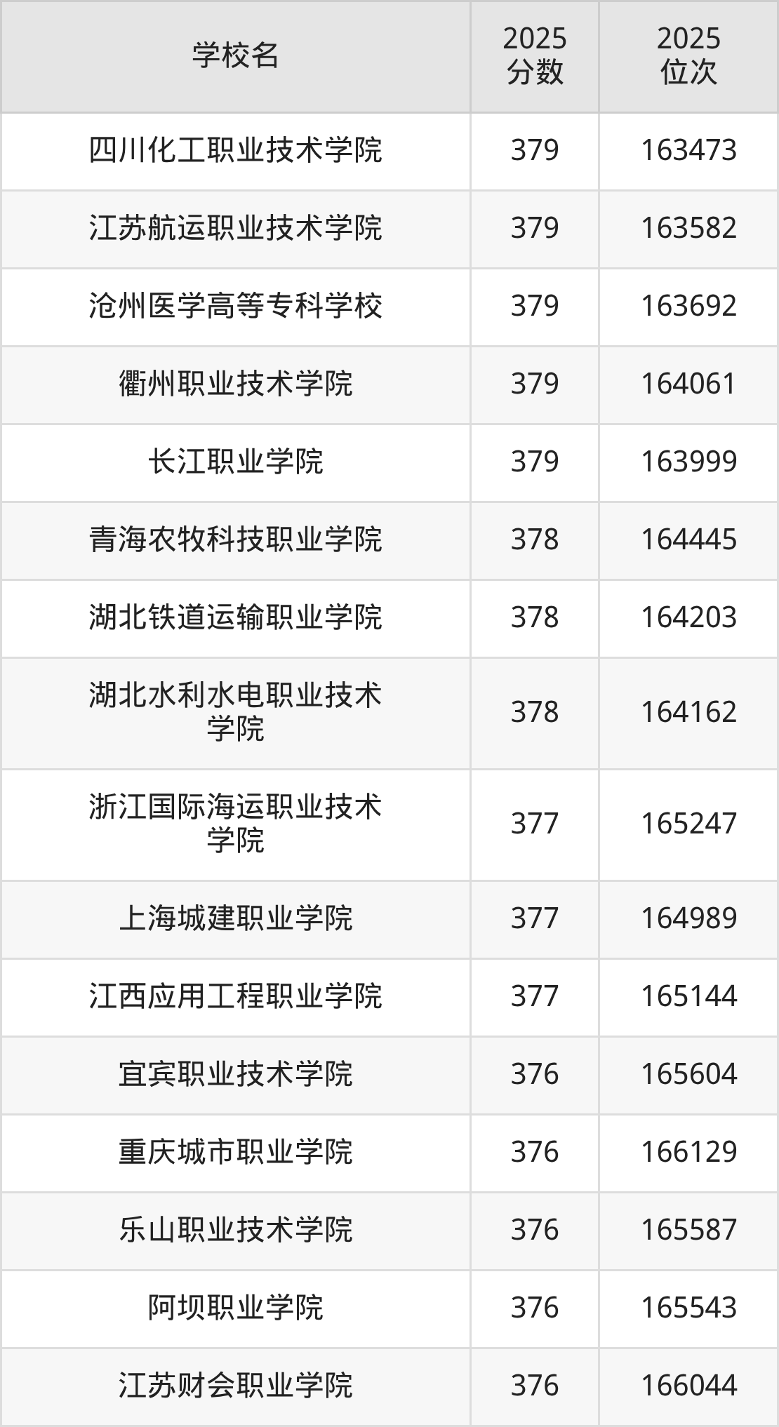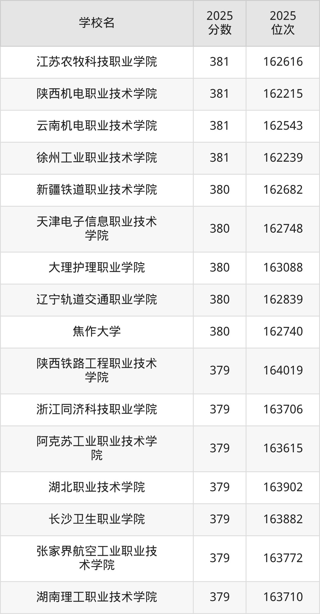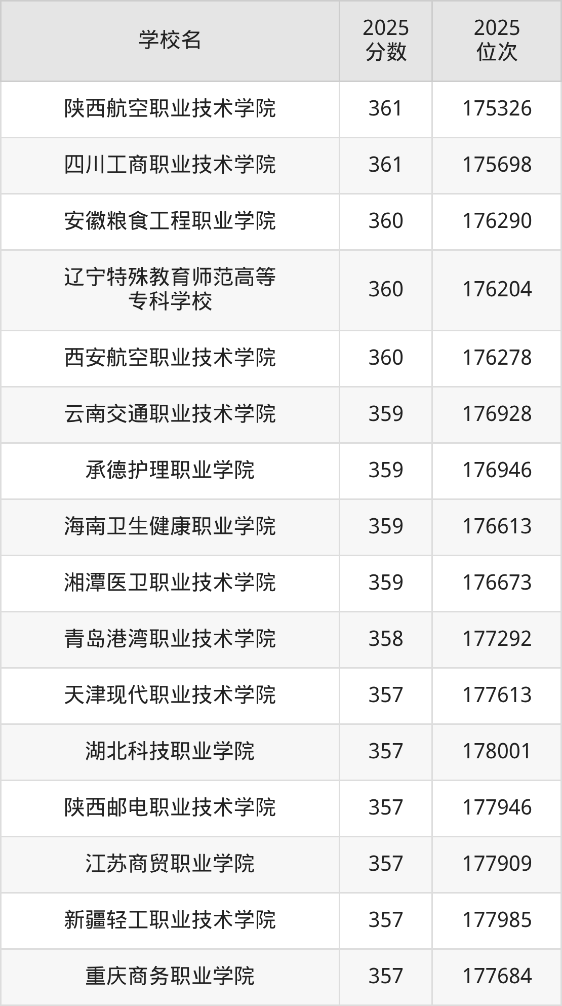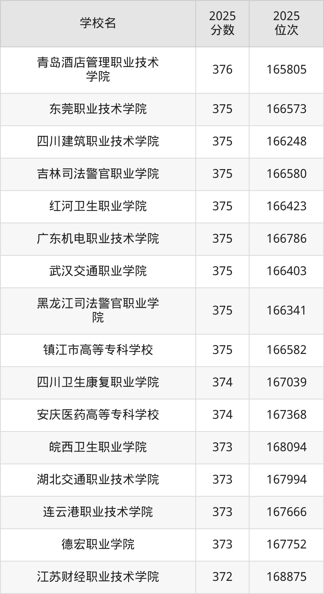 | 陕西航空职业技术学院 | 375 | 71955 |