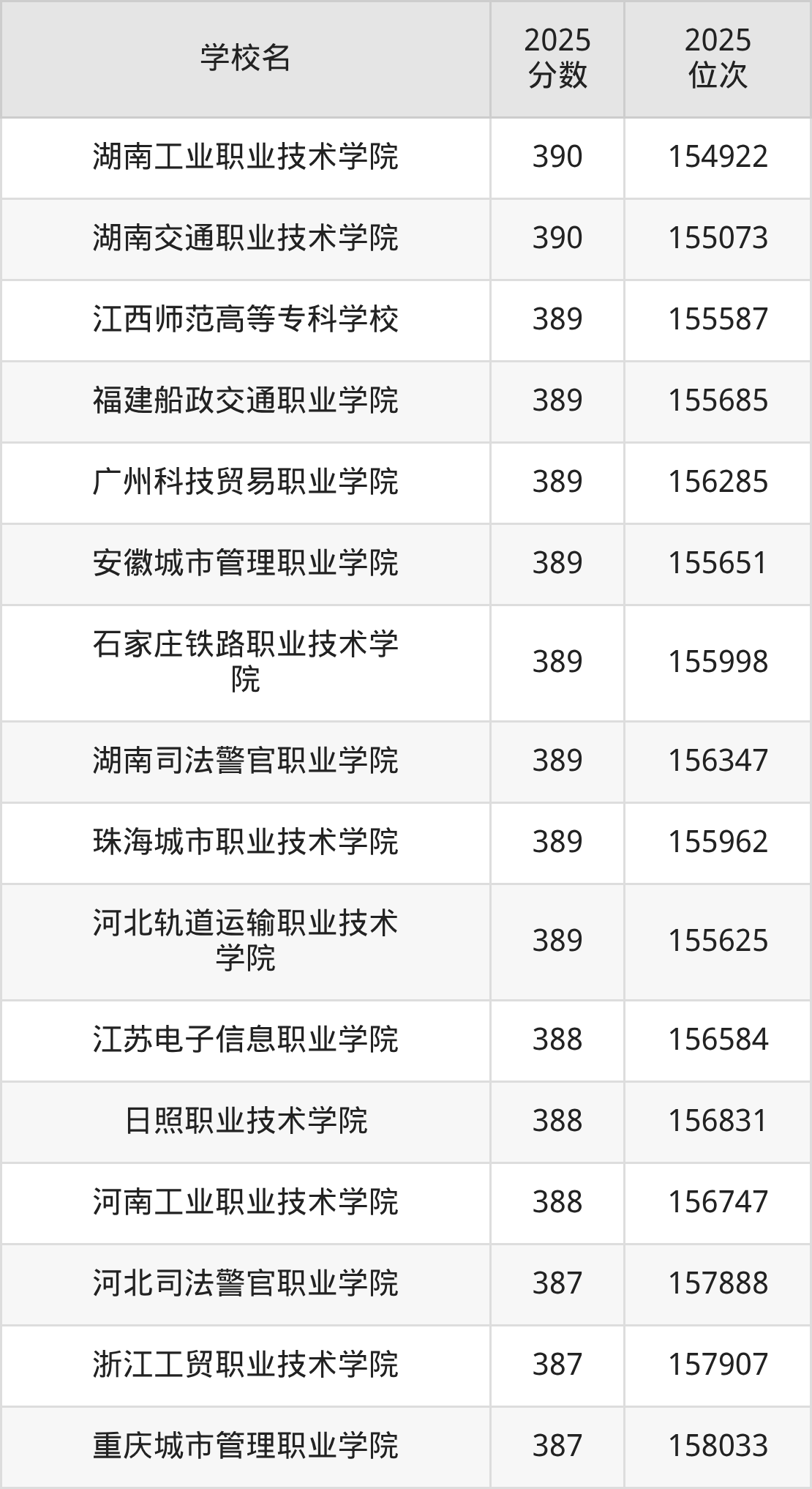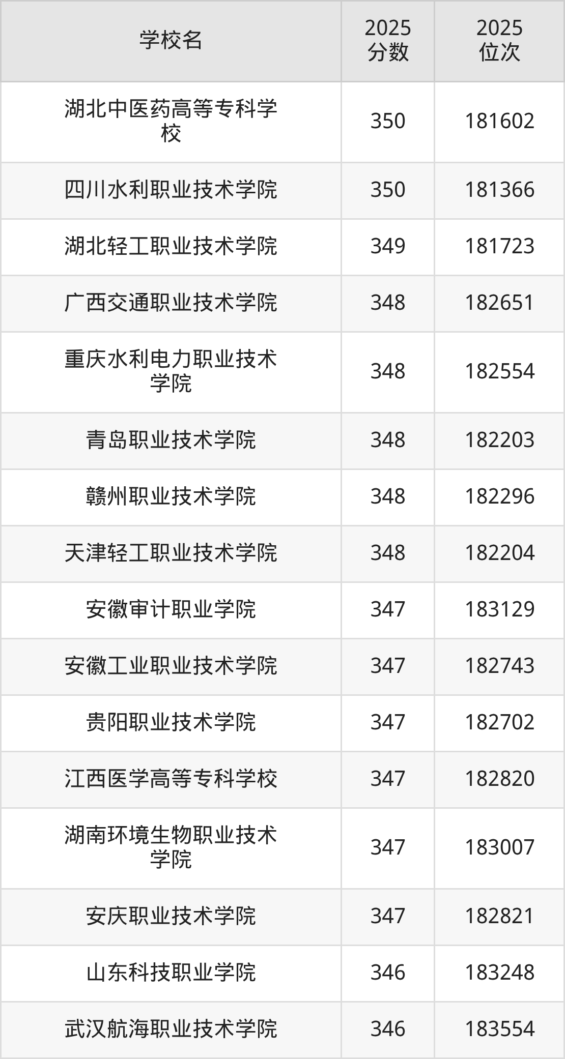 | 湖北水利水电职业技术 学院 | 387 | 68150 |