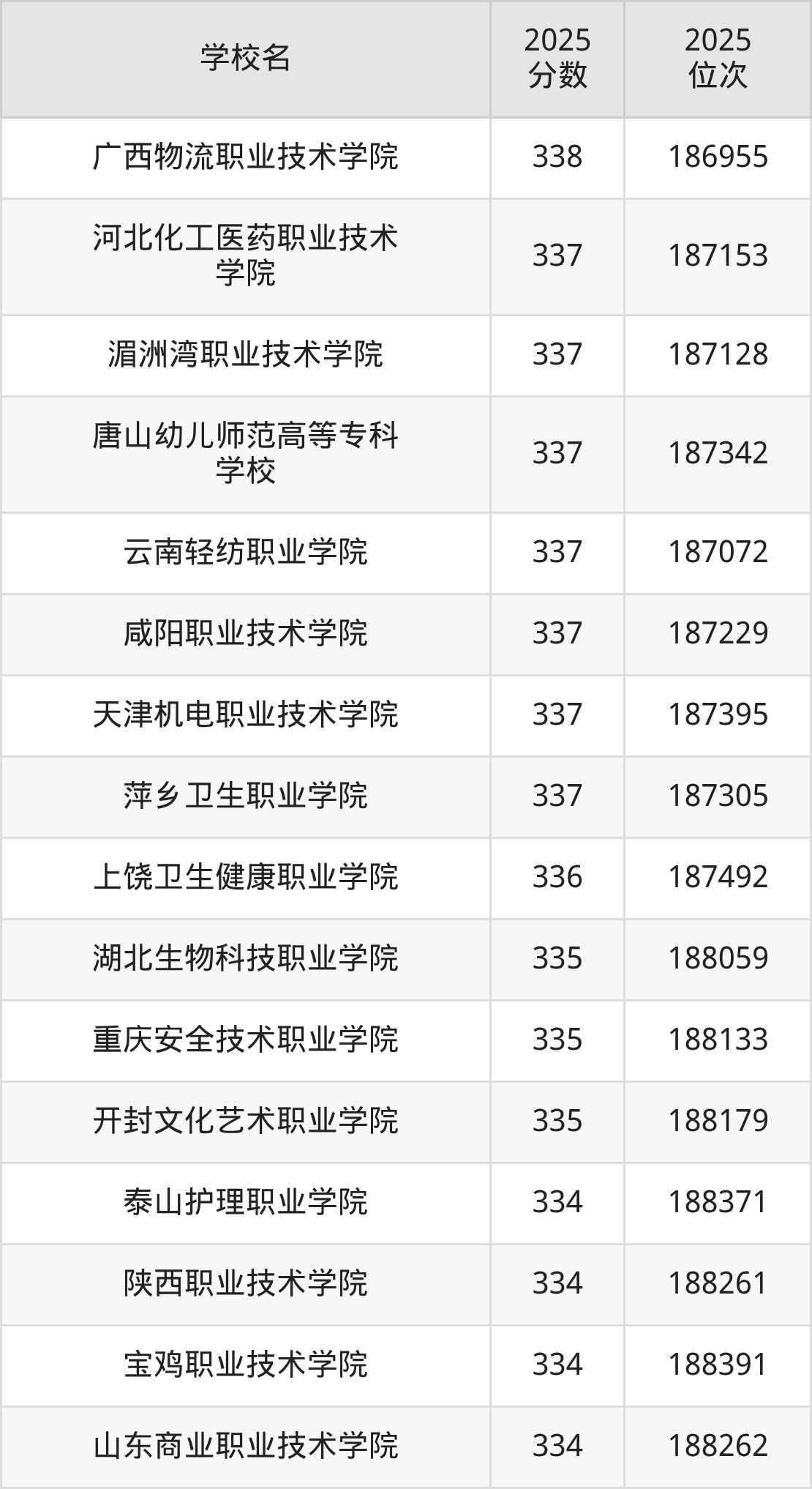 | 陕西邮电职业技术学院 | 335 | 81567 |