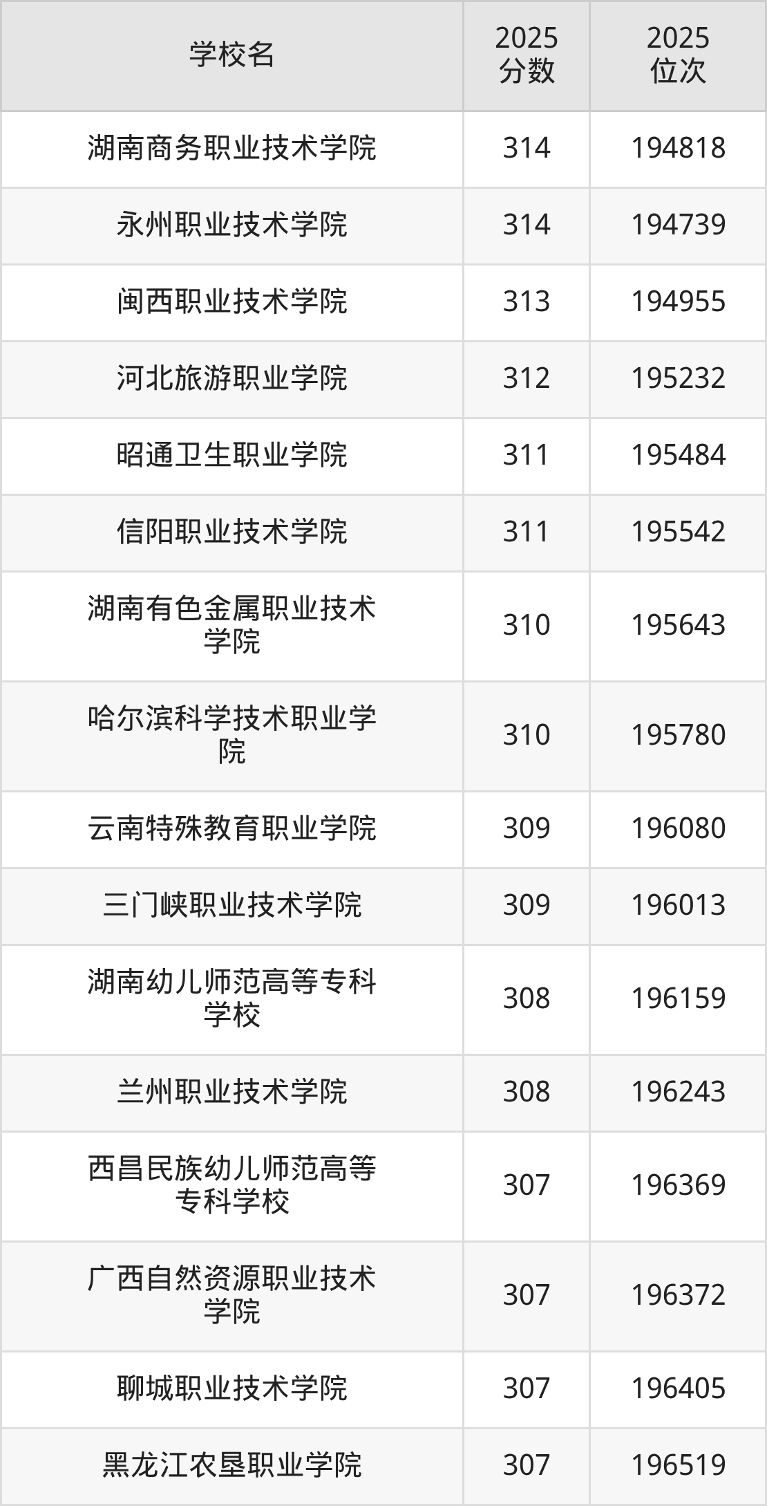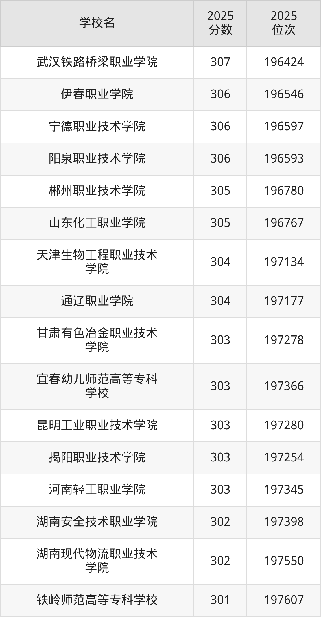 | 湖南水利水电职业技术 学院 | 301 | 85573 |