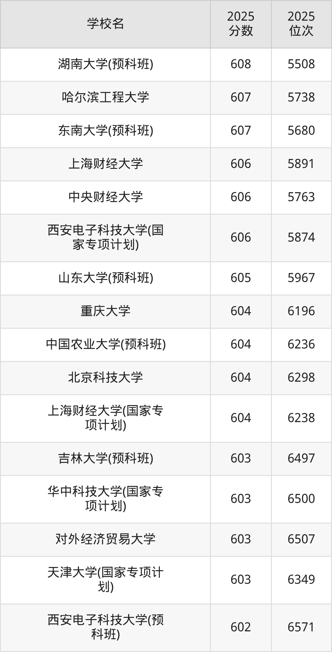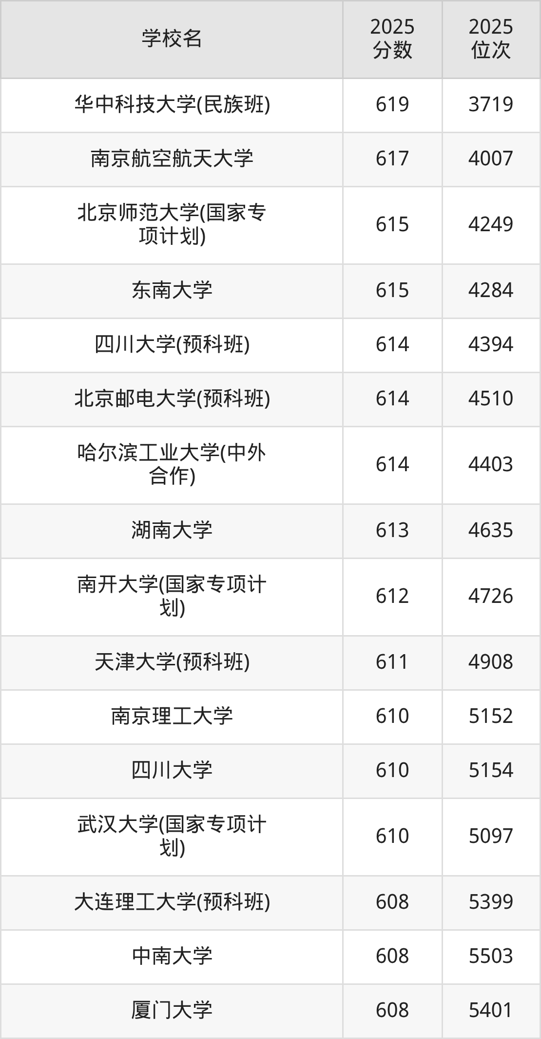 录取分数线的波动较大,下面圆梦小编为大家带来了2025年600到630分对应的位次排名区间,建议2026年位于该位次范围内的考生参考上文所整理的学校(本文仅针对贵州省)。