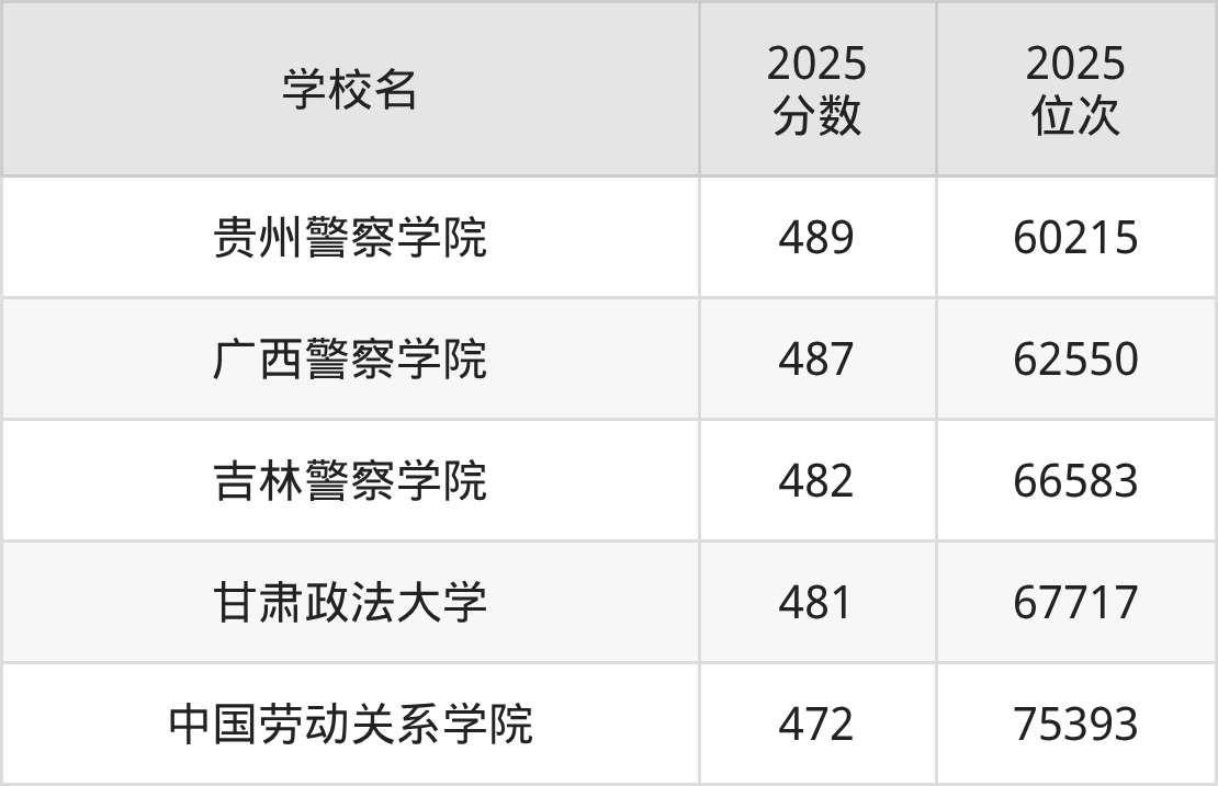 温馨提示:全国各省录取分数线不相同,本文以贵州省为例,为大家带来2025年录取分数线位于470到490分的政法大学名单汇总,并附上该分数段对应的位次排名区间,供查阅。
