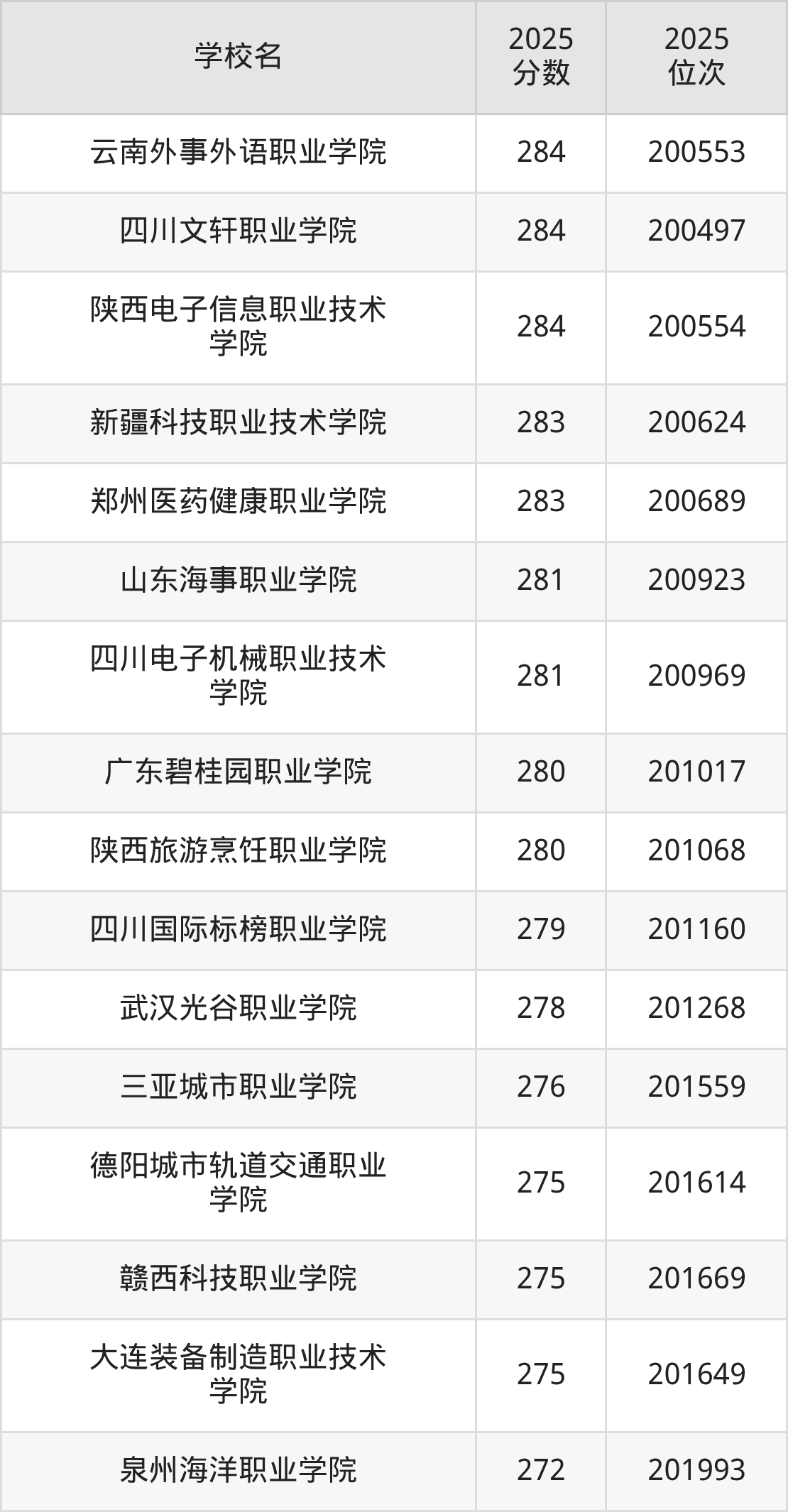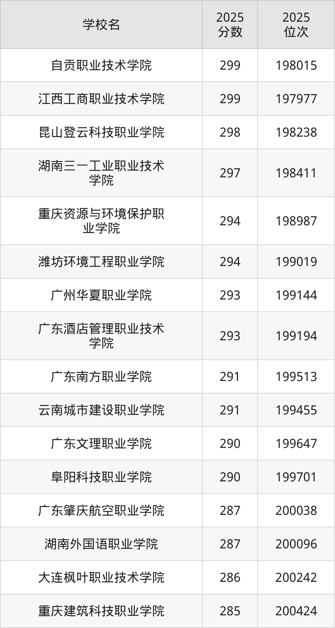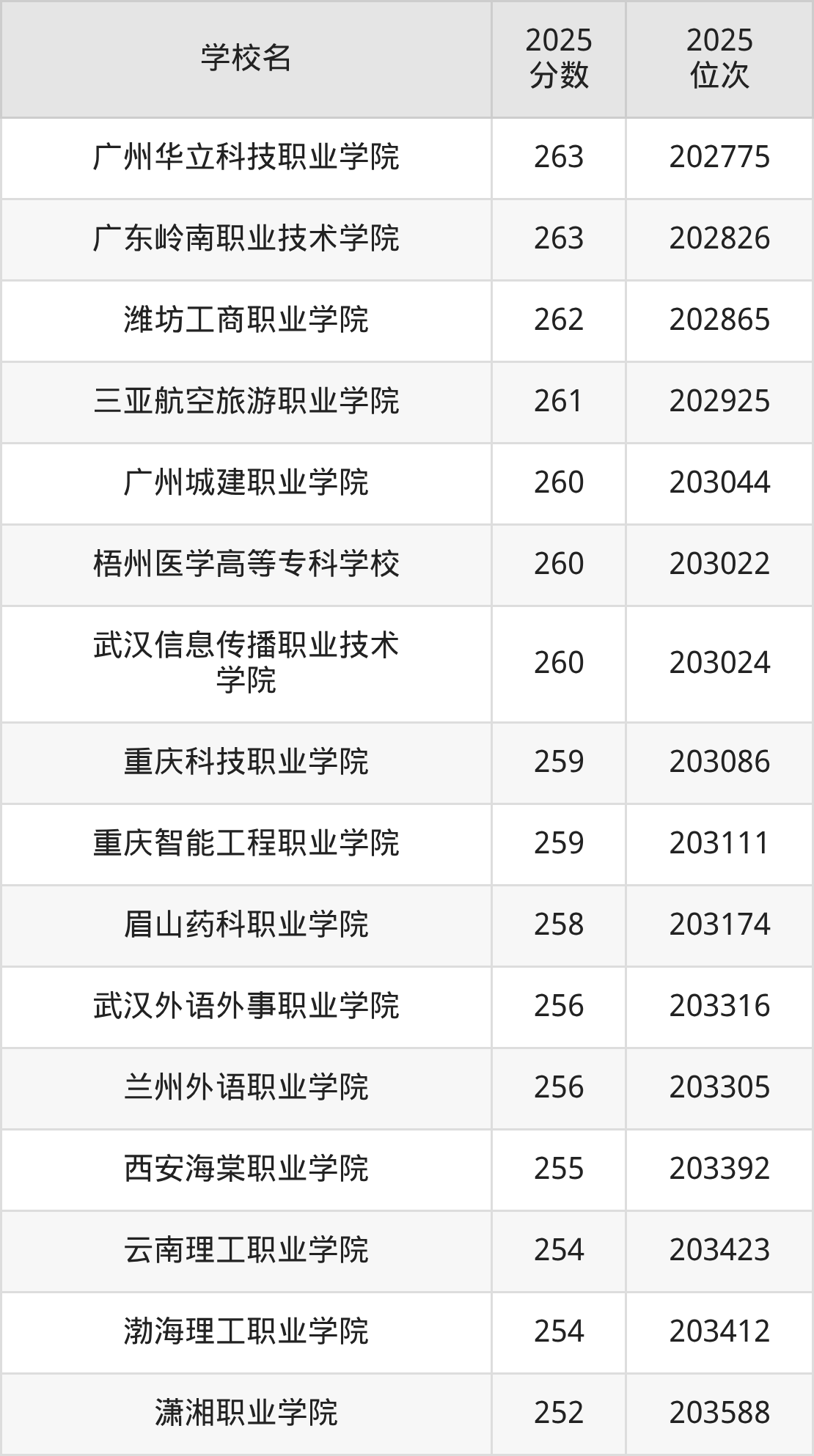 温馨提示:全国各省录取分数线不相同,本文以贵州省为例,为大家带来2025年录取分数线位于250到300分的民办专科学校名单汇总,并附上该分数段对应的位次排名区间,供查阅。