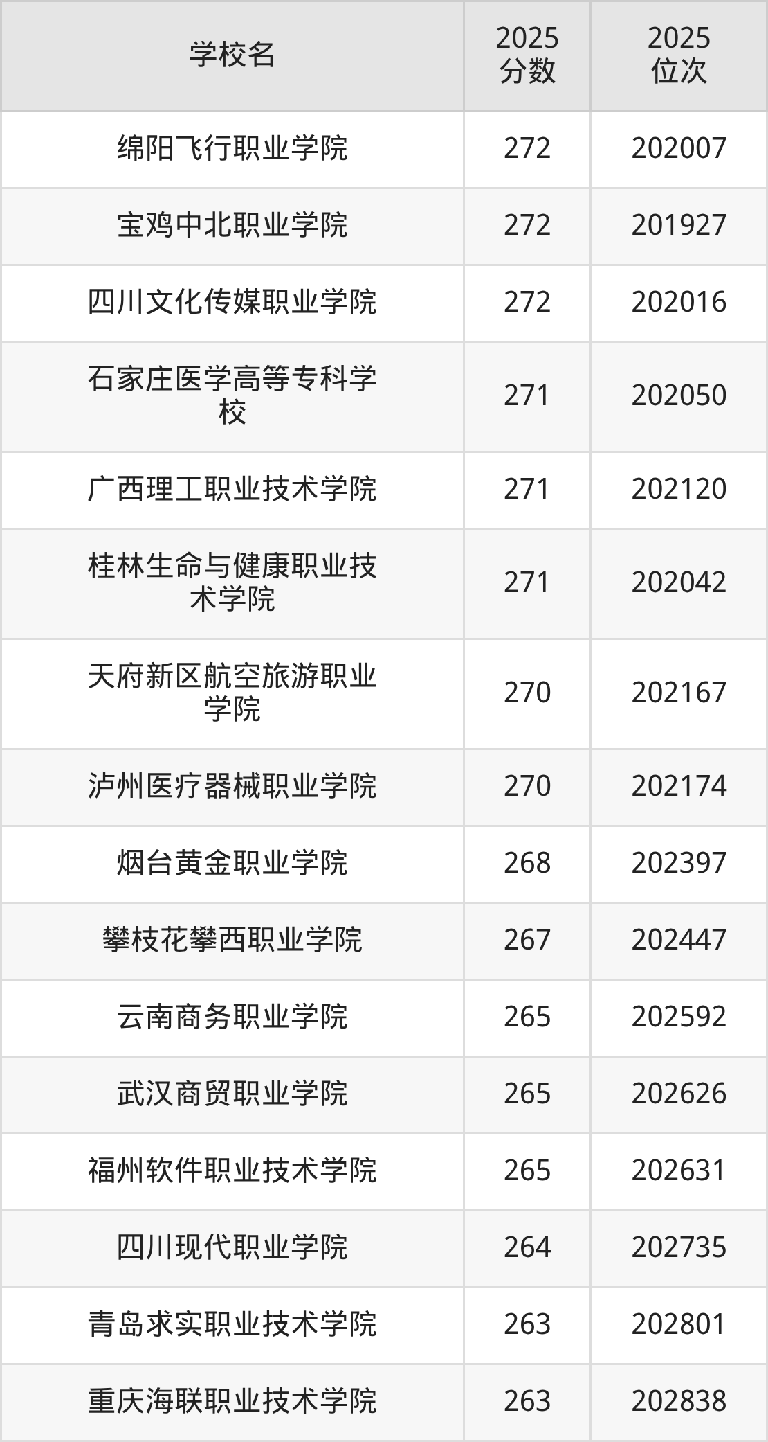 | 四川电子机械职业技术 学院 | 265 | 87501 |