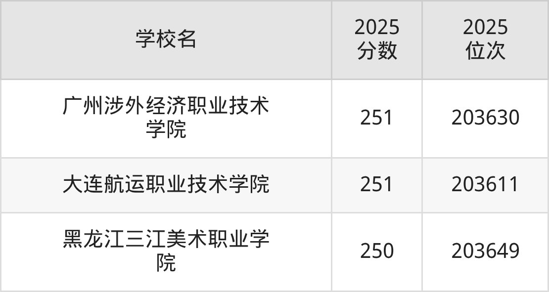 录取分数线的波动较大,下面圆梦小编为大家带来了2025年250到300分对应的位次排名区间,建议2026年位于该位次范围内的考生参考上文所整理的学校(本文仅针对贵州省)。