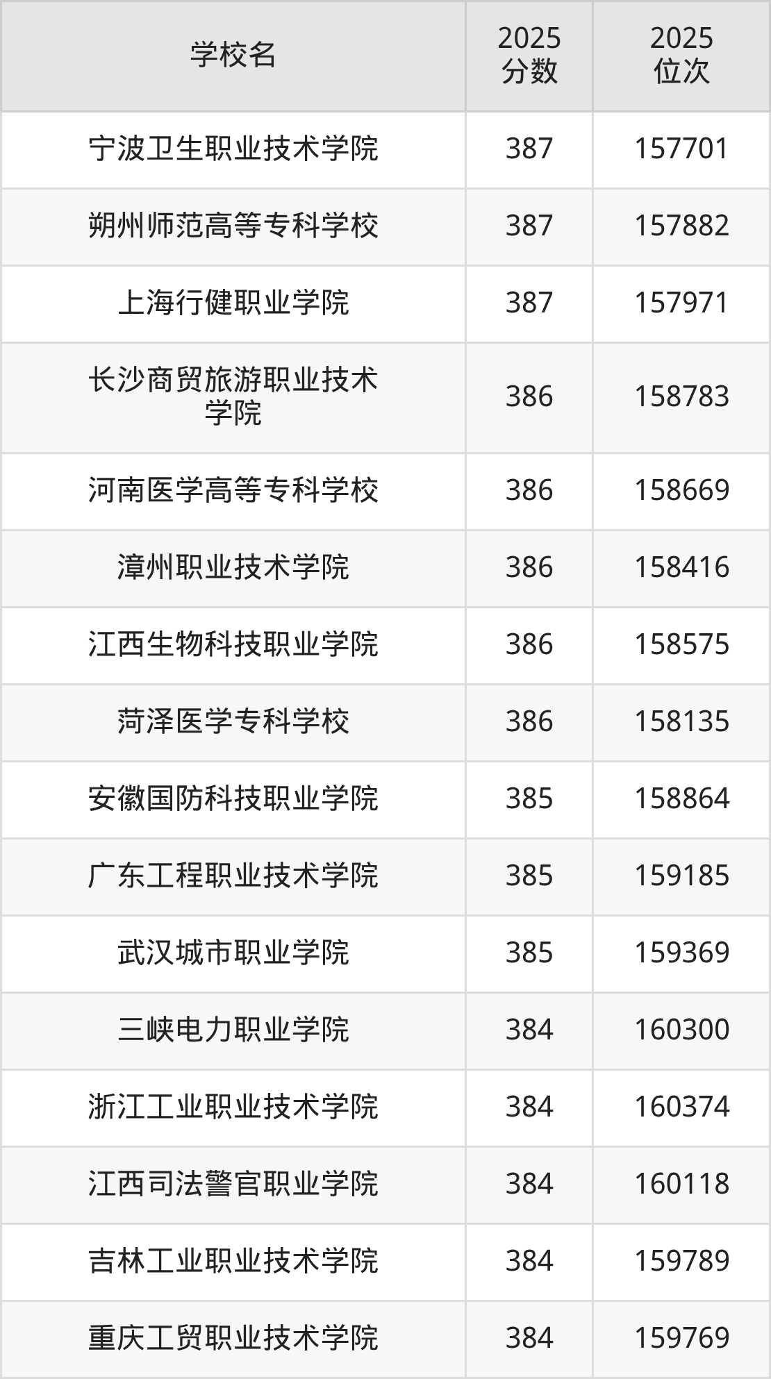 | 廊坊卫生职业学院 | 384 | 69128 |