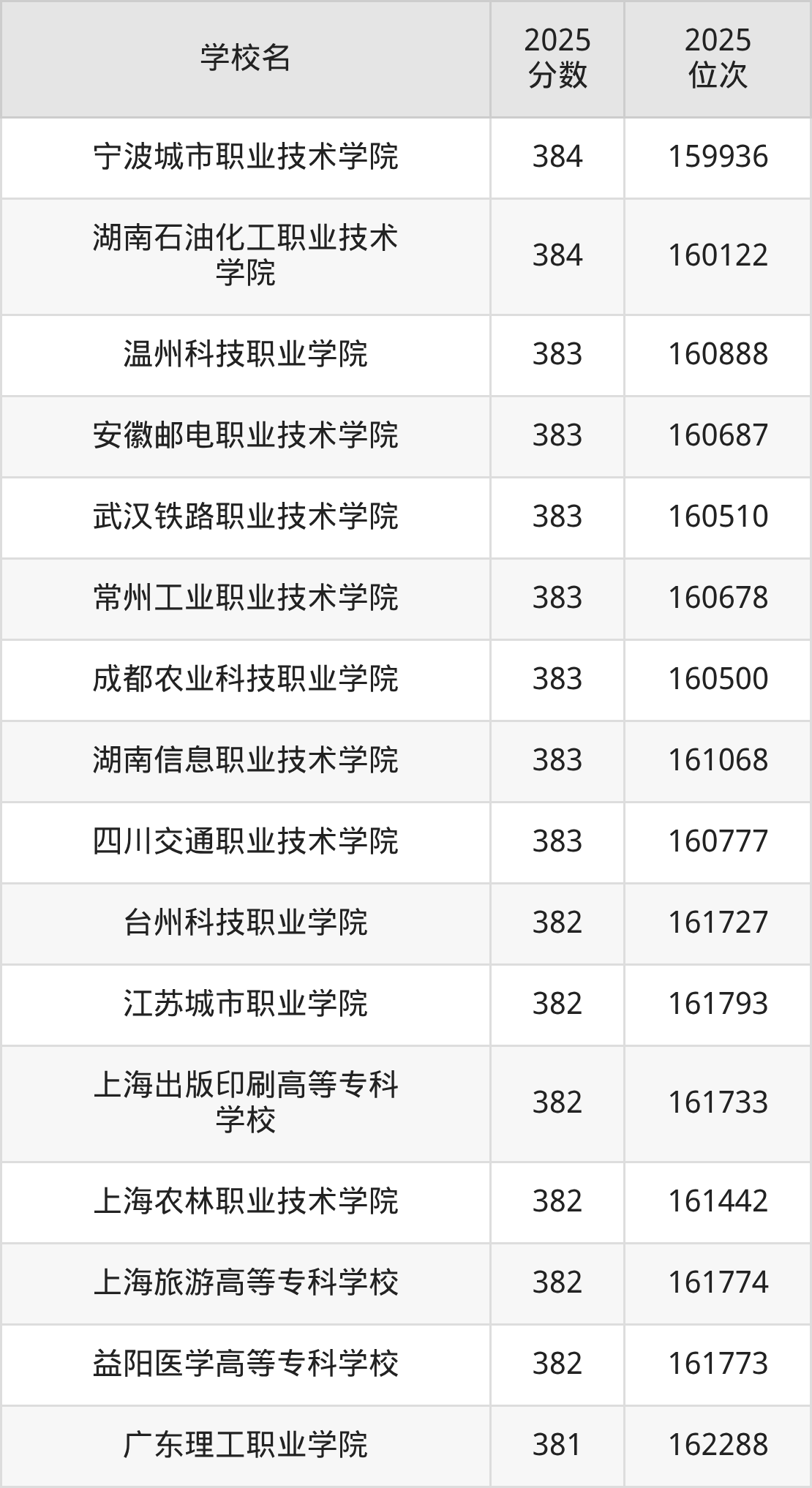 | 广东环境保护工程职业 学院 | 381 | 70205 |
